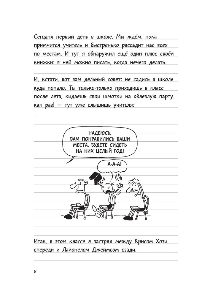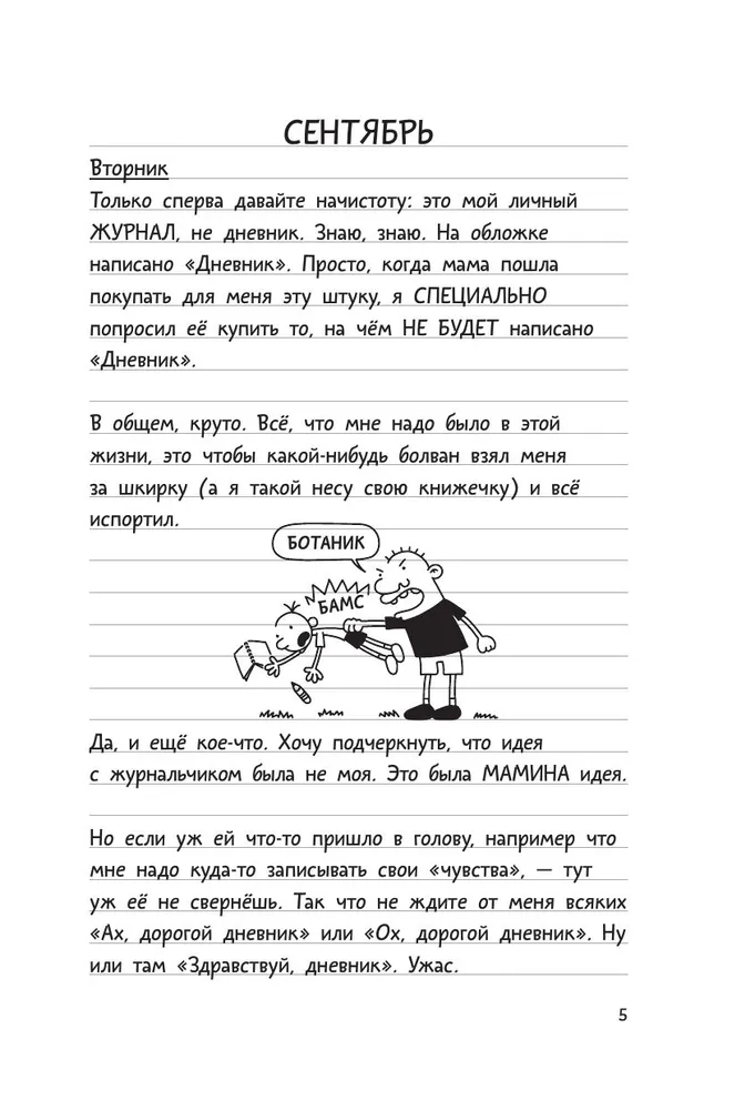 ОписаниеГлавный герой книги Грег Хеффли - простой школьник, который попадает в различные смешные и грустные истории. Дневник, который он ведет, полон веселых записей и историй из жизни. "Если ты учишься в школе - в каких-нибудь "средних" классах - ты знаешь, что жизнь тяжела и коварна. Тебя вызывают к доске именно в тот день, когда ты - ну… что-то там не доделал. Бывает же! А на перемене и после уроков вокруг ходят, как волки, страшные, накачанные старшеклассники. Девчонки только и глядят, что на малюсенький, вскочивший за ухом прыщик. Глядят и хихикают. Да и вообще, все смеются только над тобой. Никто не понимает: ни родители, ни даже самые близкие друзья! Хочешь футбольные бутсы, а тебе дарят умные книжки или - кошмар! - "приличный" костюм.