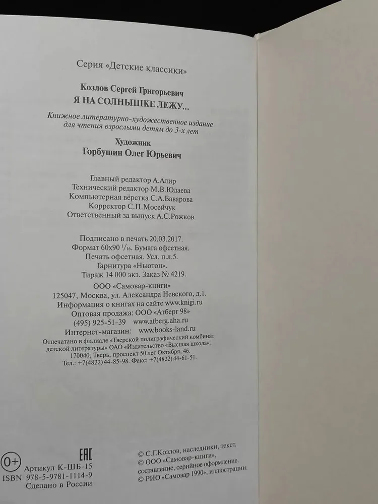 -Козлов Сергей: Детские классики. Стихи для детей. Я на солнышке лежуГоворящие книгиРазвитие ребенка и подготовка к школе (0-6 лет)Активный тренинг Серия: Умные карточкиКнижка-панорамкаПознавательная литература обо всемДетская и подросковая современная литература (до 16 лет)Детская и подросковая познавательная литератураРазвивающая и обучающая литератураПервые книги малыша. Развитие ребенкаПознавательная литература для детейДетский досугКомиксы, Манга, АртбукиДетские книги на ивритеЯ читаю сам!