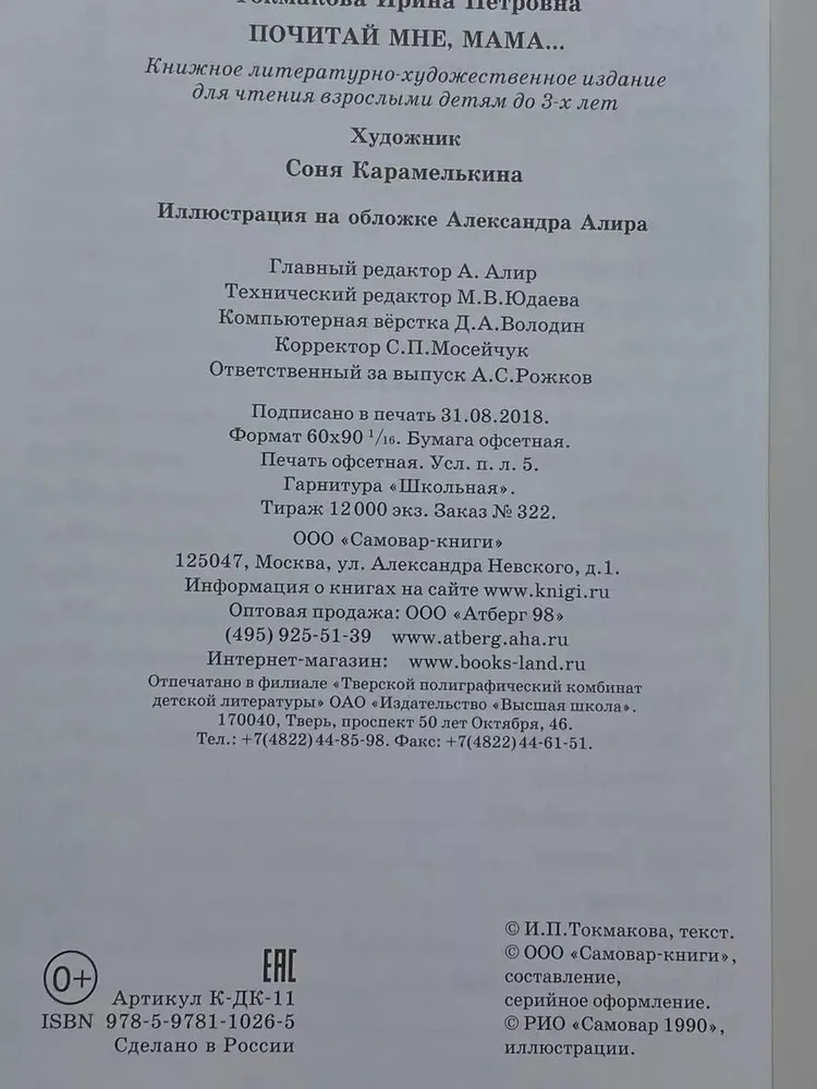 -Токмакова Ирина Петровна: Детские классики. Стихи для детей. Почитай мне мамаГоворящие книгиРазвитие ребенка и подготовка к школе (0-6 лет)Активный тренинг Серия: Умные карточкиКнижка-панорамкаПознавательная литература обо всемДетская и подросковая современная литература (до 16 лет)Детская и подросковая познавательная литератураРазвивающая и обучающая литератураПервые книги малыша. Развитие ребенкаПознавательная литература для детейДетский досугКомиксы, Манга, АртбукиДетские книги на ивритеЯ читаю сам!