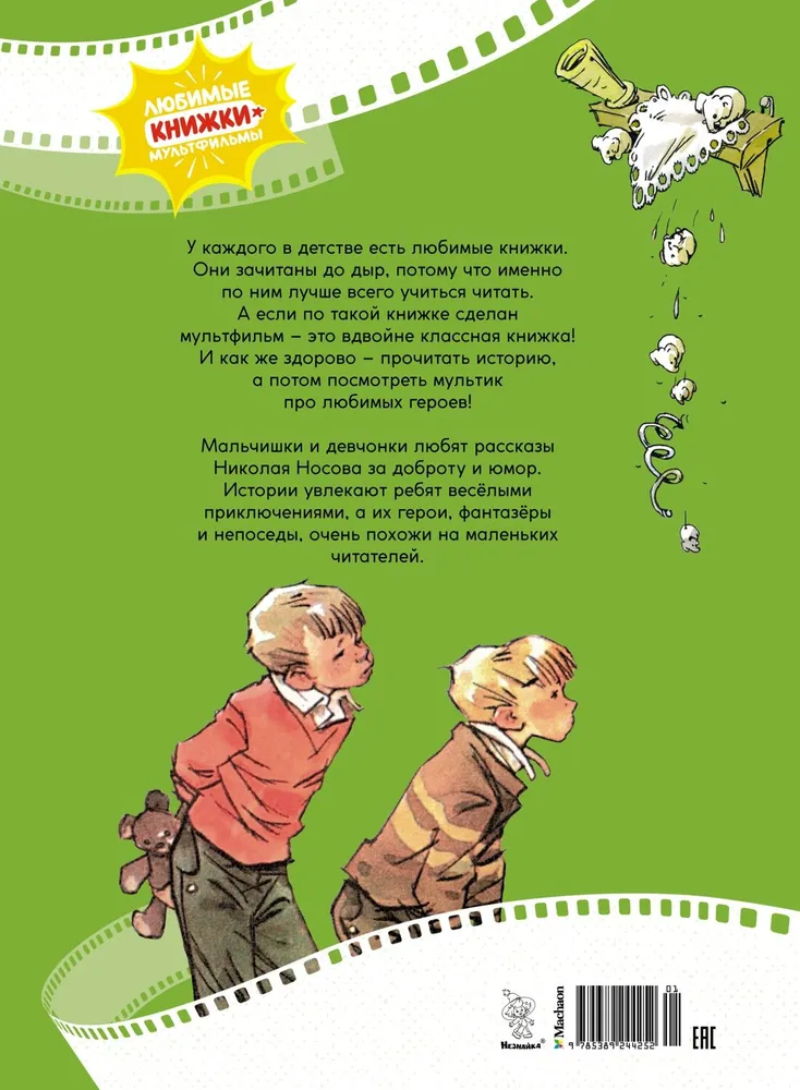 ОписаниеУ каждого в детстве есть любимые книжки. Они зачитаны до дыр, потому что именно по ним лучше всего учиться читать. А если по такой книжке сделан мультфильм - это вдвойне классная книжка! И как же здорово - прочитать историю, а потом посмотреть мультик про любимых героев! Мальчишки и девчонки любят рассказы Николая Носова за доброту и юмор. Истории увлекают ребят весёлыми приключениями, а их герои, фантазёры и непоседы, очень похожи на маленьких читателей.Для дошкольного возраста.