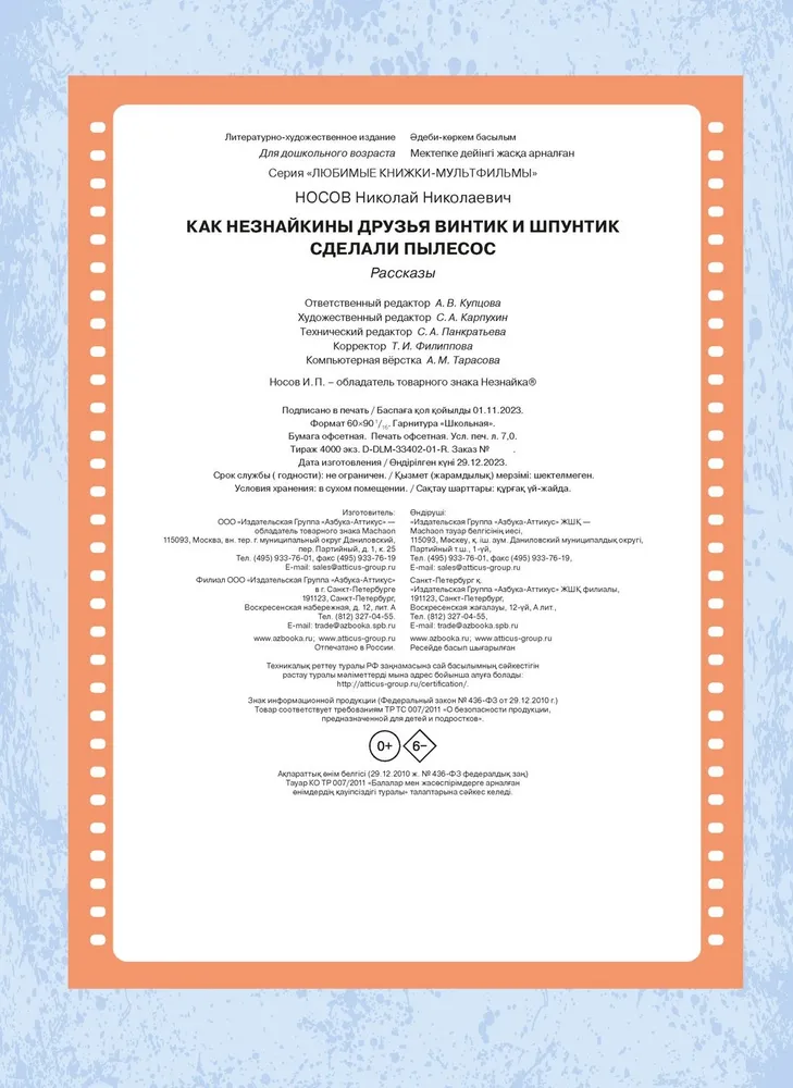 -Носов Николай Николаевич: Как Незнайкины друзья Винтик и Шпунтик сделали пылесос. РассказыГоворящие книгиРазвитие ребенка и подготовка к школе (0-6 лет)Активный тренинг Серия: Умные карточкиКнижка-панорамкаПознавательная литература обо всемДетская и подросковая современная литература (до 16 лет)Детская и подросковая познавательная литератураРазвивающая и обучающая литератураПервые книги малыша. Развитие ребенкаПознавательная литература для детейДетский досугКомиксы, Манга, АртбукиДетские книги на ивритеЯ читаю сам!
