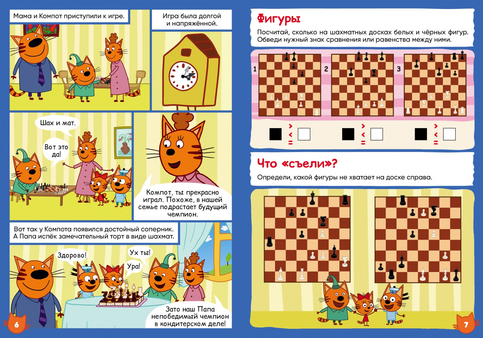 ОписаниеВ этом номере Коржик, Карамелька и Компот расскажут тебе о своих любимых занятиях. А ещё тебя ждут увлекательные задания и интересная игра, в которую весело играть дружной компанией! Основано на сериях «Шахматы» и «Самокат».В этом номере Коржик, Карамелька и Компот расскажут тебе о своих любимых занятиях. А ещё тебя ждут увлекательные задания и интересная игра, в которую весело играть дружной компанией! Основано на сериях «Шахматы» и «Самокат».