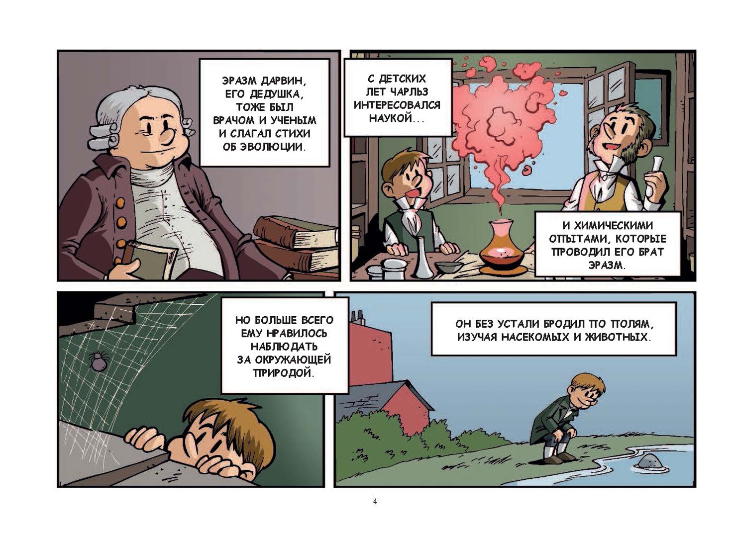 ОписаниеВ этом комиксе история открытия Чарльзом Дарвином теории эволюции представлена в интересном и необычном ракурсе. Вы узнаете о молодом и полном надежд ученом, медике, отправившемся навстречу приключениям. Но в результате этого путешествия он сумел найти ответ на вопрос, над которым бились тысячи ученых умов по всему миру столетиями: откуда произошел человек? Для младшего и среднего школьного возрастаВ этом комиксе история открытия Чарльзом Дарвином теории эволюции представлена в интересном и необычном ракурсе. Вы узнаете о молодом и полном надежд ученом, медике, отправившемся навстречу приключениям. Но в результате этого путешествия он сумел найти ответ на вопрос, над которым бились тысячи ученых умов по всему миру столетиями: откуда произошел человек? Для младшего и среднего школьного возраста