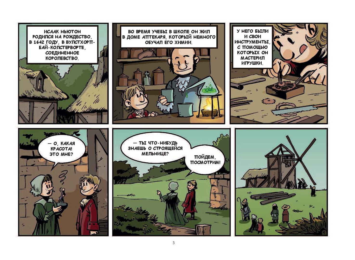 ОписаниеОткройте этот красивый авторский комикс и узнаете, что великий Ньютон был гениальным ребенком, а в Кембридже он изучал алхимию! Звучит совсем нескучно, не правда ли? А может быть вы хотите узнать, как Ньютон совершил самое свое главное открытие - гравитацию? Нет ничего проще, ведь в комиксах любой, даже самый сложный предмет, оживает и становится невероятно интересным и понятным читателям любого возраста.Перед вами захватывающая и полная удивительных открытий, успехов и провалов жизнь одного из величайших ученых последнего тысячелетия - Исаака Ньютона. Кем он был на самом деле - математиком, алхимиком, а может быть управляющим английского Монетного двора? Узнай, кем был человек, открывший гравитацию!Откройте этот красивый авторский комикс и узнаете, что великий Ньютон был гениальным ребенком, а в Кембридже он изучал алхимию! Звучит совсем нескучно, не правда ли? А может быть вы хотите узнать, как Ньютон совершил самое свое главное открытие - гравитацию? Нет ничего проще, ведь в комиксах любой, даже самый сложный предмет, оживает и становится невероятно интересным и понятным читателям любого возраста.Перед вами захватывающая и полная удивительных открытий, успехов и провалов жизнь одного из величайших ученых последнего тысячелетия - Исаака Ньютона. Кем он был на самом деле - математиком, алхимиком, а может быть управляющим английского Монетного двора? Узнай, кем был человек, открывший гравитацию!