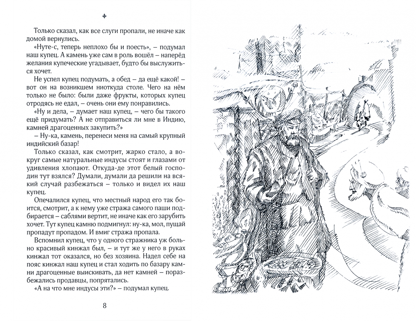 ОписаниеВ новую книгу автора вошло пять сказок разного жанра, предназначенных как для детей раннего подросткового возраста, так и для взрослого читателя. Открывает книгу "Сказка о купце и волшебном камне", в ней рассказывается о жадном купце, который случайно приобрёл возможность осуществлять любые свои желания, и о том, чем всё это закончилось. "Сказка о Солнечном царстве и его мудрецах" повествует о том, как непродуманные действия наделённых властью мудрецов привели к катастрофе. "Сказка о Машинном царстве" рассказывает об умных людях - изобретателях, которые для облегчения жизни народа построили ещё более умную машину, и что в результате получилось. В сказке "Избушка на болоте" приведена удивительная история девочки, которая на три года пропала, отправившись с подружками в лес за грибами. Не менее удивительная история произошла и с Аней из доброй сказки "Замазка", повествующей о случайной встрече девочки с инопланетным разумным существом, их дружбе и невероятных приключениях.СвернутьВ новую книгу автора вошло пять сказок разного жанра, предназначенных как для детей раннего подросткового возраста, так и для взрослого читателя. Открывает книгу "Сказка о купце и волшебном камне", в ней рассказывается о жадном купце, который случайно приобрёл возможность осуществлять любые свои желания, и о том, чем всё это закончилось. "Сказка о Солнечном царстве и его мудрецах" повествует о том, как непродуманные действия наделённых властью мудрецов привели к катастрофе. "Сказка о Машинном царстве" рассказывает об умных людях - изобретателях, которые для облегчения жизни народа построили ещё более умную машину, и что в результате получилось. В сказке "Избушка на болоте" приведена удивительная история девочки, которая на три года пропала, отправившись с подружками в лес за грибами. Не менее удивительная история произошла и с Аней из доброй сказки "Замазка", повествующей о случайной встрече девочки с инопланетным разумным существом, их дружбе и невероятных приключениях.СвернутьСвернуть