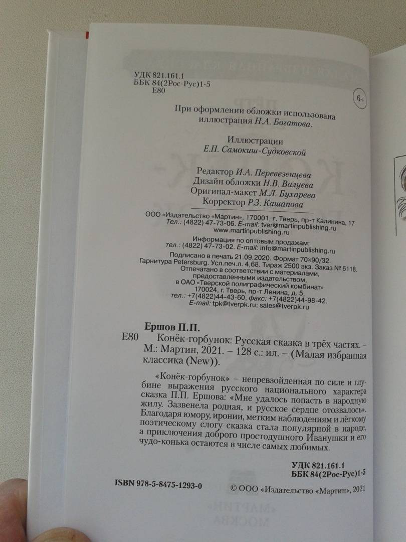 Объем, стр. 128 ISBN 978-5-8475-1293-0 Автор Ершов Петр Павлович, Самокиш-Судковская Елена Петровна Художник Самокиш-Судковская Елена Петровна Серия Малая избранная классика Минимальный возраст 6+ Год издания книги 2021 Тип обложки Твердый переплет Иллюстрации Черно-белые Вес, г 126г Размеры 172х110х8 мм - Отзывы