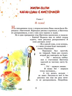 ОписаниеКнига включает в себя сказки и стихи для детей младшего и младшего школьного возраста.Сказка "Жили-были Карандаш с Кисточкой" рассказывает о непростых взаимоотношениях твердого, мудрого Карандаша и легкомысленной, немного вздорной Кисточки, а также о их общении с соседями: фломастерами, ручками, линейкой и пр. В сказке "Темнотенок, Светлун и все остальные" рассказывается о детских страхах и фантазиях, о любви, о добре, о том, что мир ребенка совершенно не похож на мир взрослых, и наполнен собственным содержанием, интересным и неожиданным. Сказка "Однажды в снежном городе" рассказывает о том, как два снеговика заставили выйти из смартфонов всех мальчишек и девчонок города, и провести зиму на лыжах, санках и коньках. Сказка "Чиничка и Перепуточка" о двух совершенно разных личностях, которые живут вместе, но из-за несогласованности действий, попадают в довольно сложную ситуацию. Сказка "Недопеченный - недожаренный" о блине, испеченном к празднику Масленицы, и его приключениях. В сказке "Криво-косо да кое-как" говорится о том, что внутренняя красота человека: любовь, доброта, трудолюбие, уважение к другим людям - всегда более ценны, чем броская внешняя красота. Стихи для детей наполнены позитивной энергетикой, простые и радостные.СвернутьКнига включает в себя сказки и стихи для детей младшего и младшего школьного возраста.Сказка "Жили-были Карандаш с Кисточкой" рассказывает о непростых взаимоотношениях твердого, мудрого Карандаша и легкомысленной, немного вздорной Кисточки, а также о их общении с соседями: фломастерами, ручками, линейкой и пр. В сказке "Темнотенок, Светлун и все остальные" рассказывается о детских страхах и фантазиях, о любви, о добре, о том, что мир ребенка совершенно не похож на мир взрослых, и наполнен собственным содержанием, интересным и неожиданным. Сказка "Однажды в снежном городе" рассказывает о том, как два снеговика заставили выйти из смартфонов всех мальчишек и девчонок города, и провести зиму на лыжах, санках и коньках. Сказка "Чиничка и Перепуточка" о двух совершенно разных личностях, которые живут вместе, но из-за несогласованности действий, попадают в довольно сложную ситуацию. Сказка "Недопеченный - недожаренный" о блине, испеченном к празднику Масленицы, и его приключениях. В сказке "Криво-косо да кое-как" говорится о том, что внутренняя красота человека: любовь, доброта, трудолюбие, уважение к другим людям - всегда более ценны, чем броская внешняя красота. Стихи для детей наполнены позитивной энергетикой, простые и радостные.СвернутьСвернуть