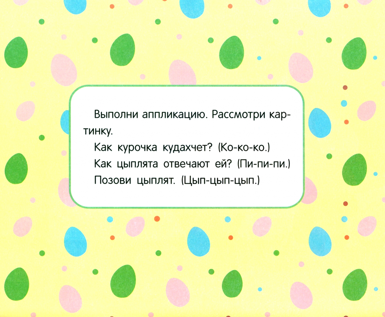 ОписаниеНа страничках этой книги вашего малыша ждут очень простые и красивые аппликации - помогите ребёнку их выполнить. Для занятий выберите удобное, хорошо освещённое рабочее место. Постелите на стол клеёнку. Приготовьте влажную тряпочку для вытирания рук, клей для смазывания деталей аппликации и сухую тряпочку для разглаживания приклеенных фрагментов.Для детей до трех лет.На страничках этой книги вашего малыша ждут очень простые и красивые аппликации - помогите ребёнку их выполнить. Для занятий выберите удобное, хорошо освещённое рабочее место. Постелите на стол клеёнку. Приготовьте влажную тряпочку для вытирания рук, клей для смазывания деталей аппликации и сухую тряпочку для разглаживания приклеенных фрагментов.Для детей до трех лет.