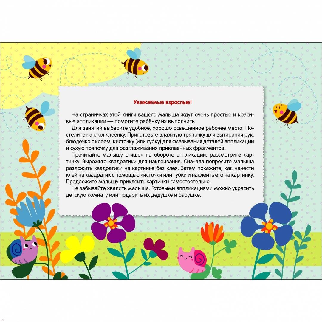 ОписаниеНа страничках этой книги вашего малыша ждут очень простые и красивые аппликации - помогите ребёнку их выполнить. Для занятий выберите удобное, хорошо освещённое рабочее место. Постелите на стол клеёнку. Приготовьте влажную тряпочку для вытирания рук, клей для смазывания деталей аппликации и сухую тряпочку для разглаживания приклеенных фрагментов.Аппликации для детей дошкольного возраста.На страничках этой книги вашего малыша ждут очень простые и красивые аппликации - помогите ребёнку их выполнить. Для занятий выберите удобное, хорошо освещённое рабочее место. Постелите на стол клеёнку. Приготовьте влажную тряпочку для вытирания рук, клей для смазывания деталей аппликации и сухую тряпочку для разглаживания приклеенных фрагментов.Аппликации для детей дошкольного возраста.