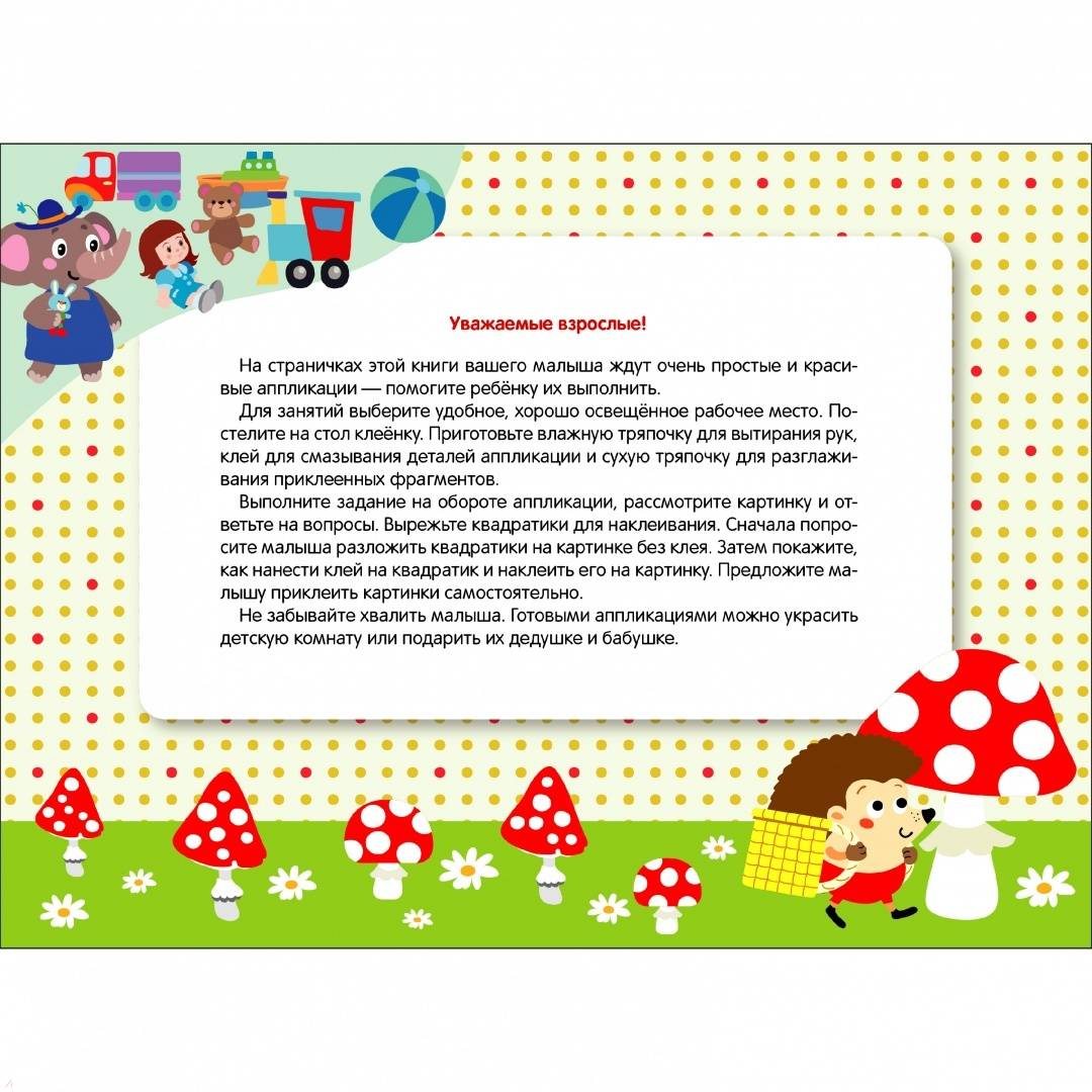 ОписаниеНа страничках этой книги вашего малыша ждут очень простые и красивые аппликации – помогите ребёнку их выполнить. Для занятий выберите удобное, хорошо освещённое рабочее место. Постелите на стол клеёнку. Приготовьте влажную тряпочку для вытирания рук, клей для смазывания деталей аппликации и сухую тряпочку для разглаживания приклеенных фрагментов.Аппликации для детей дошкольного возраста.На страничках этой книги вашего малыша ждут очень простые и красивые аппликации – помогите ребёнку их выполнить. Для занятий выберите удобное, хорошо освещённое рабочее место. Постелите на стол клеёнку. Приготовьте влажную тряпочку для вытирания рук, клей для смазывания деталей аппликации и сухую тряпочку для разглаживания приклеенных фрагментов.Аппликации для детей дошкольного возраста.