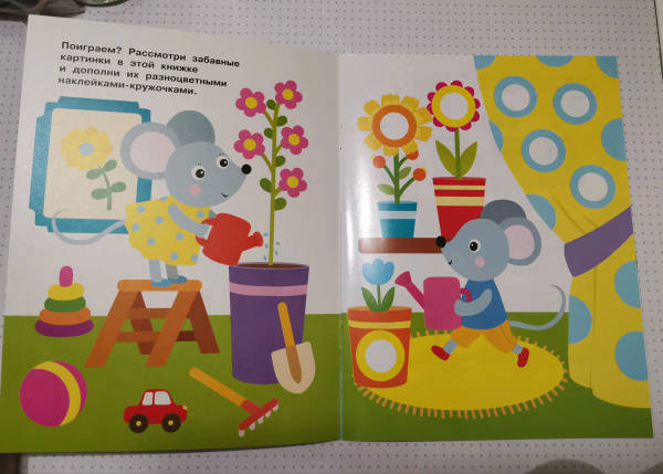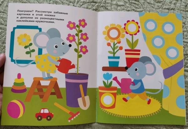 ОписаниеПриклеивая на картинки в этой книге яркие разноцветные многоразовые наклейки-кружочки, ваш малыш сможет повторять названия цветов и предметов, развивать мелкую моторику и усидчивость.Для детей до 3-х лет.Приклеивая на картинки в этой книге яркие разноцветные многоразовые наклейки-кружочки, ваш малыш сможет повторять названия цветов и предметов, развивать мелкую моторику и усидчивость.Для детей до 3-х лет.