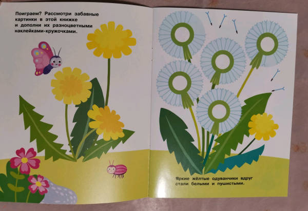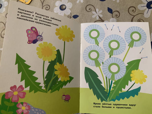 ОписаниеПриклеивая на картинки в этой книге яркие разноцветные многоразовые наклейки-кружочки, ваш малыш сможет повторять названия цветов и предметов, развивать мелкую моторику и усидчивость.Для детей до 3-х лет.Приклеивая на картинки в этой книге яркие разноцветные многоразовые наклейки-кружочки, ваш малыш сможет повторять названия цветов и предметов, развивать мелкую моторику и усидчивость.Для детей до 3-х лет.