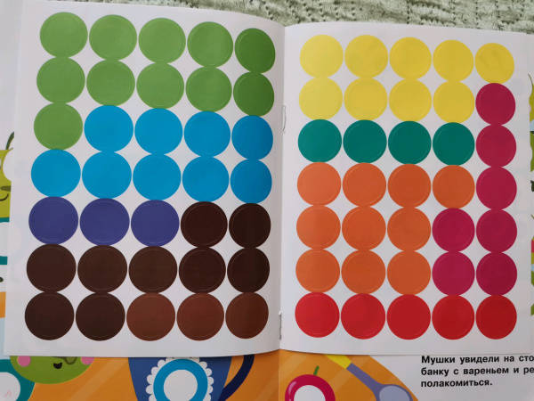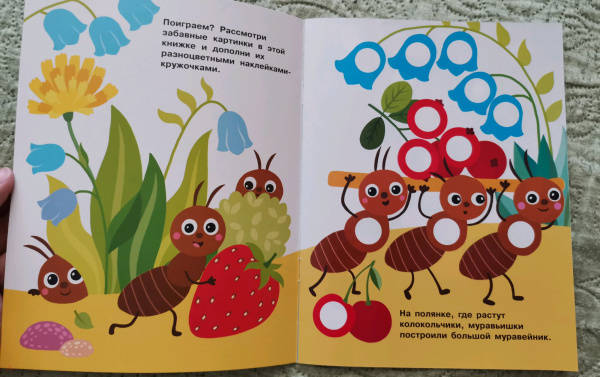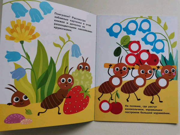 ОписаниеПриклеивая на картинки в этой книге яркие разноцветные многоразовые наклейки-кружочки, ваш малыш сможет повторять названия цветов и предметов, развивать мелкую моторику и усидчивость.Для детей до 3-х лет.Приклеивая на картинки в этой книге яркие разноцветные многоразовые наклейки-кружочки, ваш малыш сможет повторять названия цветов и предметов, развивать мелкую моторику и усидчивость.Для детей до 3-х лет.
