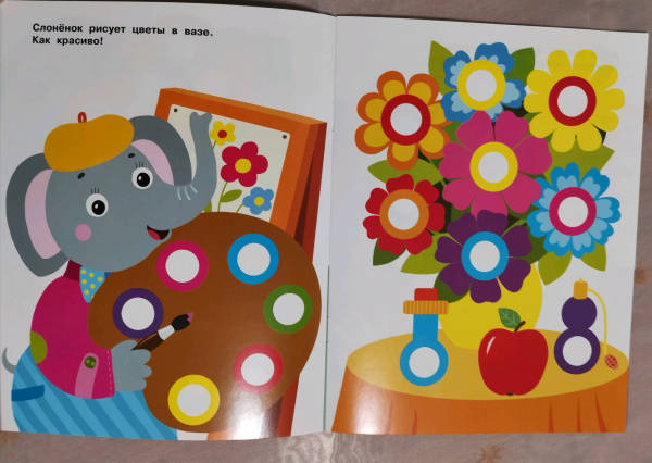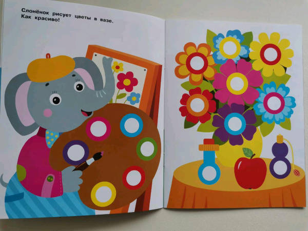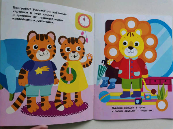 ОписаниеПриклеивая на картинки в этой книге яркие разноцветные многоразовые наклейки-кружочки, ваш малыш сможет повторять названия цветов и предметов, развивать мелкую моторику и усидчивость.Для детей до 3-х лет.Приклеивая на картинки в этой книге яркие разноцветные многоразовые наклейки-кружочки, ваш малыш сможет повторять названия цветов и предметов, развивать мелкую моторику и усидчивость.Для детей до 3-х лет.