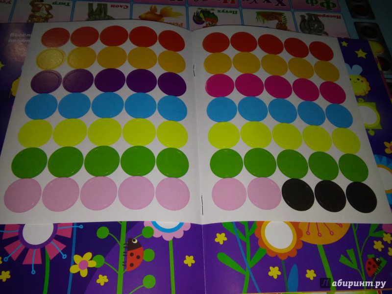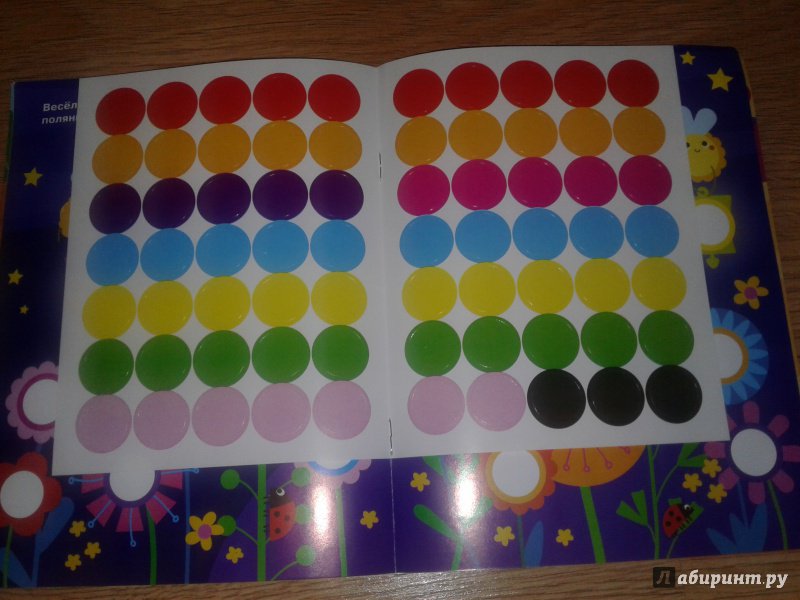 ОписаниеКнижка с комплектом разноцветных наклеек-кружочков поможет вашему малышу запомнить названия цветов и предметов, а также поспособствует развитию усидчивости, внимания и мелкой моторики.Для детей до 3 лет.Книжка с комплектом разноцветных наклеек-кружочков поможет вашему малышу запомнить названия цветов и предметов, а также поспособствует развитию усидчивости, внимания и мелкой моторики.Для детей до 3 лет.
