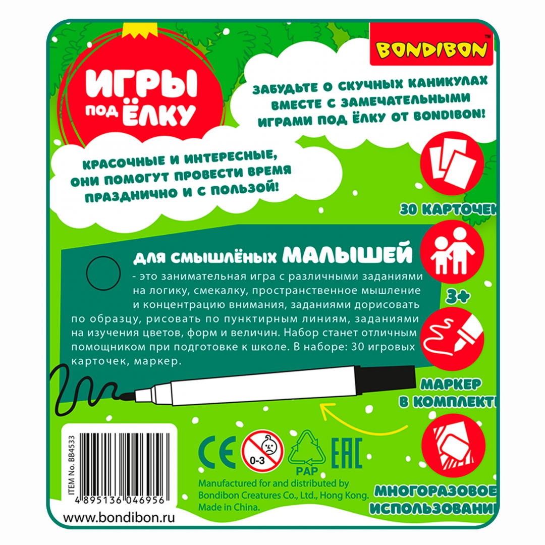ОписаниеДЛЯ СМЫШЛЁНЫХ МАЛЫШЕЙ - это занимательная игра с различными заданиями на логику, смекалку, пространственное мышление и концентрацию внимания, заданиями дорисовать по образцу, рисовать по пунктирным линиям, заданиями на изучения цветов, форм и величин. Набор станет отличным помощником при подготовке к школе. В наборе: 30 игровых карточек, маркер. Вместе с замечательными мини-играми под ёлку от BONDIBON вы прекрасно проведете свой досуг в новогодние праздники! Красочные и интересные, они помогут провести время празднично и с пользой.Для детей от 3-х лет.Сделано в Китае.ДЛЯ СМЫШЛЁНЫХ МАЛЫШЕЙ - это занимательная игра с различными заданиями на логику, смекалку, пространственное мышление и концентрацию внимания, заданиями дорисовать по образцу, рисовать по пунктирным линиям, заданиями на изучения цветов, форм и величин. Набор станет отличным помощником при подготовке к школе. В наборе: 30 игровых карточек, маркер. Вместе с замечательными мини-играми под ёлку от BONDIBON вы прекрасно проведете свой досуг в новогодние праздники! Красочные и интересные, они помогут провести время празднично и с пользой.Для детей от 3-х лет.Сделано в Китае.