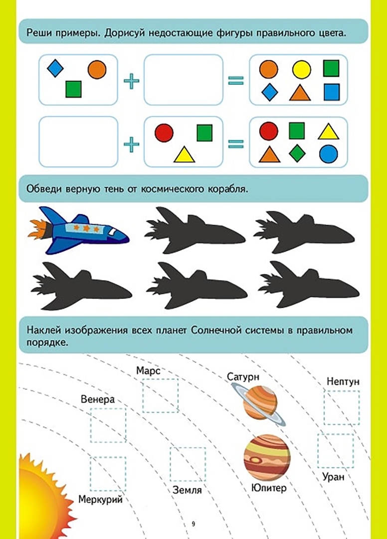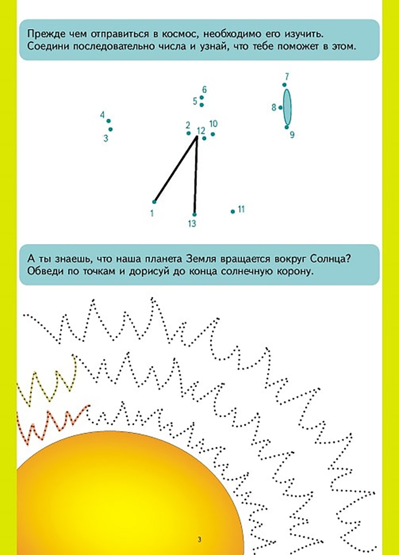 ОписаниеКнига для настоящих любителей и, возможно, будущих исследователей космоса приглашает детей в захватывающее путешествие c сюрпризами на каждой страничке. В процессе разгадывания космических загадок ребята узнают много нового о планетах, кометах и галактиках, о космических кораблях, летящих к далеким звездам, и смогут помечтать о захватывающих приключениях на пути к ним.Разнообразные интересные задания не дадут юным читателям заскучать в пути.Ребята не только познакомятся с планетами Солнечной системы и настоящими и фантазийными космическими кораблями, но и попутно в игровой форме освоят цифры и буквы, научатся решать задачки, проходить лабиринты, разгадывать головоломки и даже создавать картины с помощью пиксельных наклеек.Для совместной работы родителей и детейКнига для настоящих любителей и, возможно, будущих исследователей космоса приглашает детей в захватывающее путешествие c сюрпризами на каждой страничке. В процессе разгадывания космических загадок ребята узнают много нового о планетах, кометах и галактиках, о космических кораблях, летящих к далеким звездам, и смогут помечтать о захватывающих приключениях на пути к ним.Разнообразные интересные задания не дадут юным читателям заскучать в пути.Ребята не только познакомятся с планетами Солнечной системы и настоящими и фантазийными космическими кораблями, но и попутно в игровой форме освоят цифры и буквы, научатся решать задачки, проходить лабиринты, разгадывать головоломки и даже создавать картины с помощью пиксельных наклеек.Для совместной работы родителей и детей
