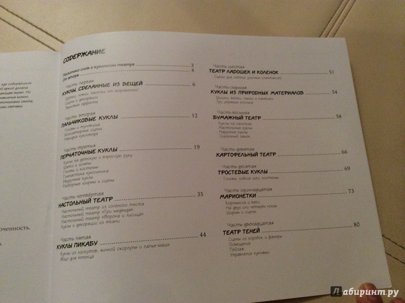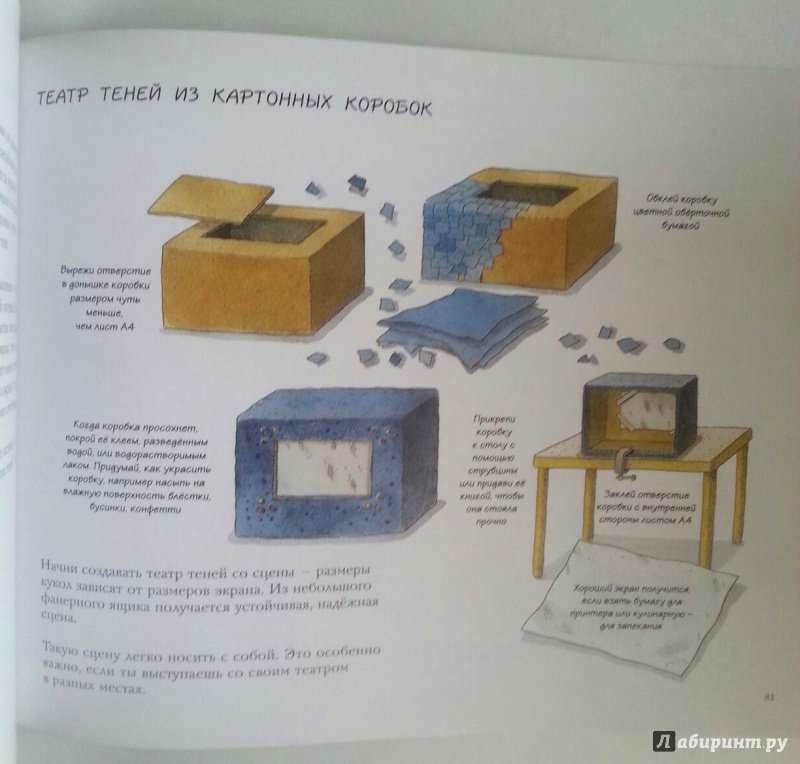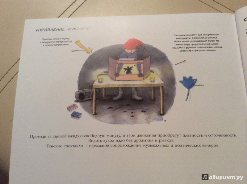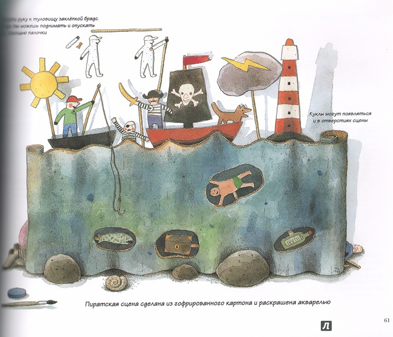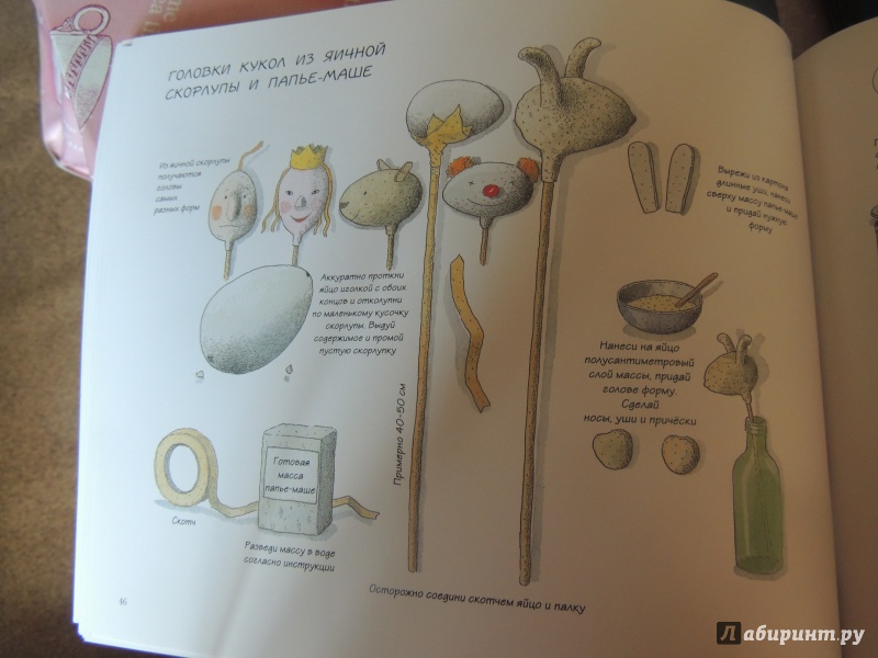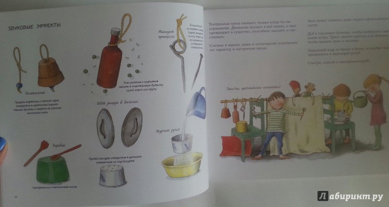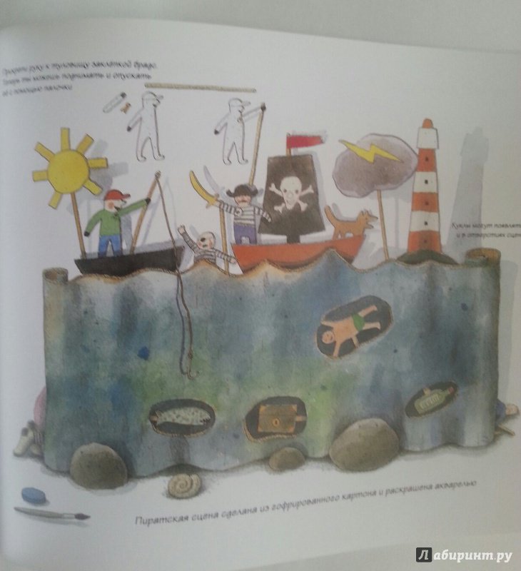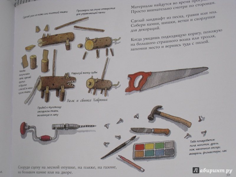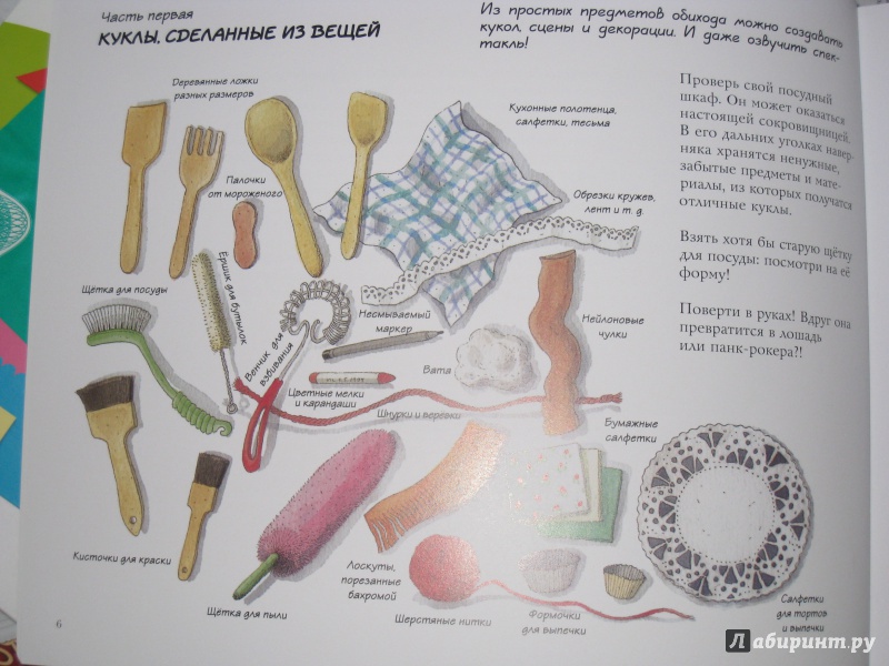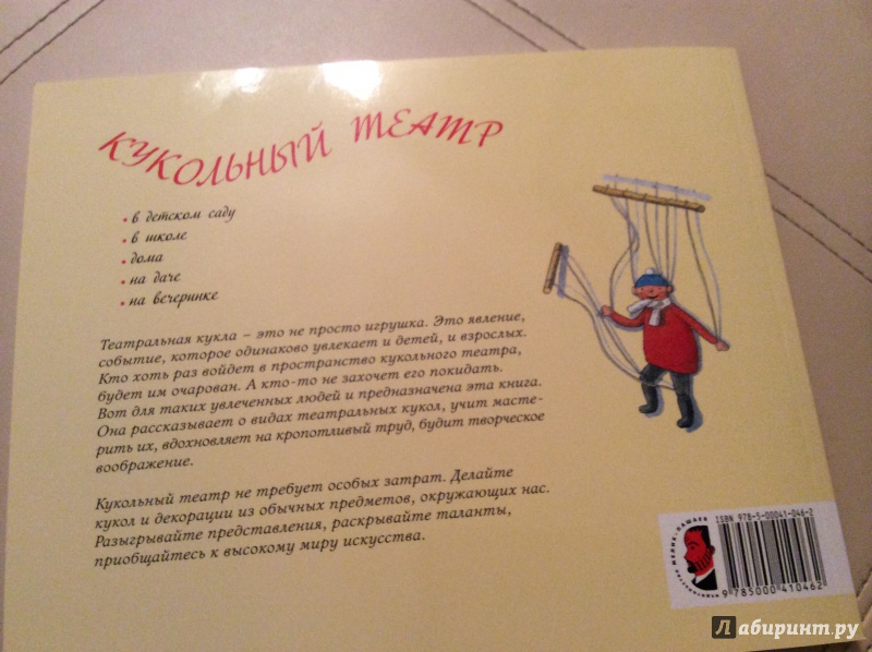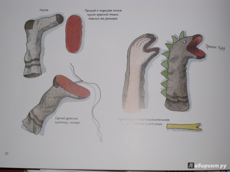ОписаниеКукольный театр прекрасен сам по себе. Его обожают и взрослые, и дети. Но если персонажи, костюмы и сцена сделаны своими руками, если кукловоды - сами дети, а также мамы, папы, другие члены семьи и друзья, то кукольный театр трансформируется в суперволшебное, невероятно захватывающее действо.Книга Майи Барик, много лет работающей в мастерской кукольного театра, в Хельсинки (Финляндия), - единственная и неповторимая в своем жанре. А всё потому, что автор с упоением описывает процесс создания кукол буквально из ничего: из предметов домашнего обихода - старых колготок, ложек-вилок, веничков и щёток; из камней и веток; из яичной скорлупы и воздушных шариков; из лоскутов и папье-маше. Даже из клубней картофеля! Все стадии создания театра - от и до, а также все виды кукол - перчаточные, тростевые, пикабу, марионетки и т.д. - вдохновенно, остроумно и в то же время очень четко и доходчиво нарисованы Кристиной Лоухи. Стоит рассмотреть всего две-три страницы книги - как руки сами тянутся скорее начать мастерить!Несомненная педагогическая польза книги состоит в том, что она будит детское воображение, вовлекает в так называемую "режиссёрскую игру" - очень важную для развития ребёнка, способствует преодолению стеснительности и "зажатости", формирует полезные навыки (шить, мастерить, клеить, рисовать, вырезать), приучает к последовательности действий. Но главное - эта книга очаровывает, увлекает и объединяет и взрослого, и ребёнка. Работать с книгой уместно и в детском саду, и в школе, и дома, и на даче, и в театральных кружках. Рекомендуется детям всех возрастов, а также их родителям. Будет полезна педагогам дополнительного художественного образования и руководителям детских театрально-кукольных студий.Для старшего дошкольного и младшего школьного возраста.СвернутьКукольный театр прекрасен сам по себе. Его обожают и взрослые, и дети. Но если персонажи, костюмы и сцена сделаны своими руками, если кукловоды - сами дети, а также мамы, папы, другие члены семьи и друзья, то кукольный театр трансформируется в суперволшебное, невероятно захватывающее действо.Книга Майи Барик, много лет работающей в мастерской кукольного театра, в Хельсинки (Финляндия), - единственная и неповторимая в своем жанре. А всё потому, что автор с упоением описывает процесс создания кукол буквально из ничего: из предметов домашнего обихода - старых колготок, ложек-вилок, веничков и щёток; из камней и веток; из яичной скорлупы и воздушных шариков; из лоскутов и папье-маше. Даже из клубней картофеля! Все стадии создания театра - от и до, а также все виды кукол - перчаточные, тростевые, пикабу, марионетки и т.д. - вдохновенно, остроумно и в то же время очень четко и доходчиво нарисованы Кристиной Лоухи. Стоит рассмотреть всего две-три страницы книги - как руки сами тянутся скорее начать мастерить!Несомненная педагогическая польза книги состоит в том, что она будит детское воображение, вовлекает в так называемую "режиссёрскую игру" - очень важную для развития ребёнка, способствует преодолению стеснительности и "зажатости", формирует полезные навыки (шить, мастерить, клеить, рисовать, вырезать), приучает к последовательности действий. Но главное - эта книга очаровывает, увлекает и объединяет и взрослого, и ребёнка. Работать с книгой уместно и в детском саду, и в школе, и дома, и на даче, и в те