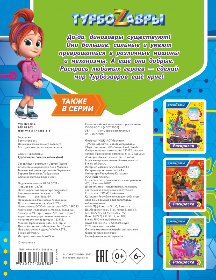 Объем, стр. 16 ISBN 978-5-17-138818-8 Серия Турбозавры Год издания книги 2021 Тип обложки Мягкий переплет Иллюстрации Черно-белые Вес, г 62 Размеры 254х196х2 мм - Отзывы