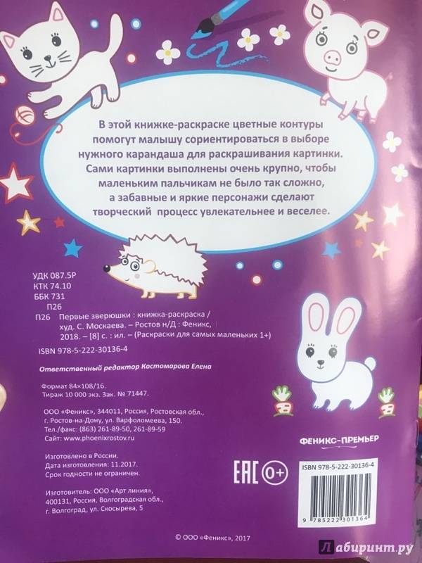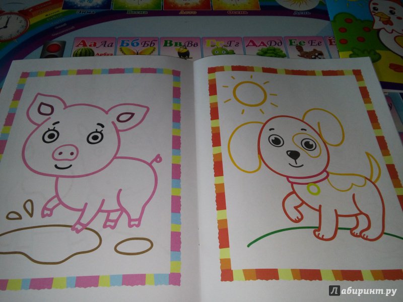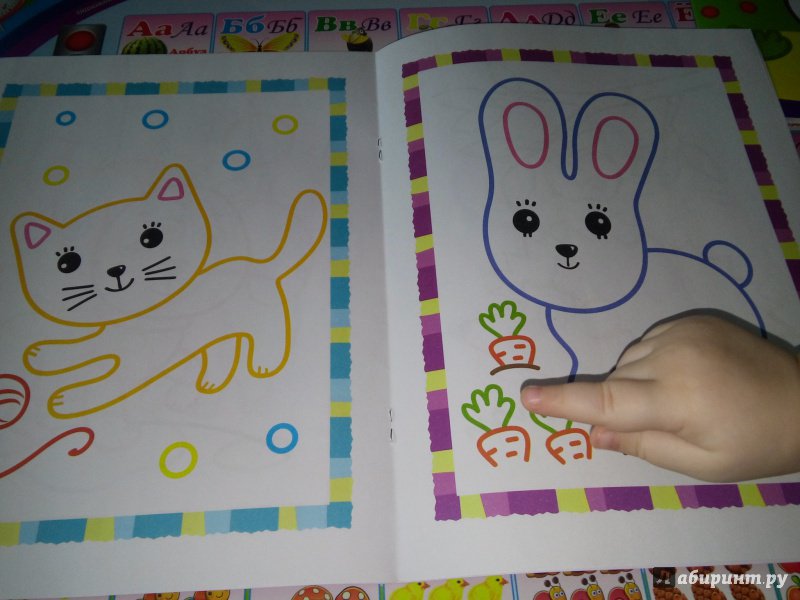 ОписаниеВ этой книжке-раскраске цветные контуры помогут малышу сориентироваться в выборе нужного карандаша для раскрашивания картинки. Сами картинки выполнены очень крупно, чтобы маленьким пальчикам было не так сложно, а забавные и яркие персонажи сделают творческий процесс увлекательнее и веселее.Для детей от 1 года.6-е издание.В этой книжке-раскраске цветные контуры помогут малышу сориентироваться в выборе нужного карандаша для раскрашивания картинки. Сами картинки выполнены очень крупно, чтобы маленьким пальчикам было не так сложно, а забавные и яркие персонажи сделают творческий процесс увлекательнее и веселее.Для детей от 1 года.6-е издание.