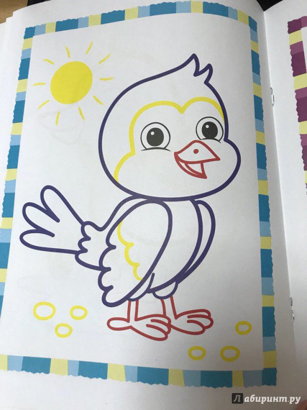 ОписаниеВ этой книжке-раскраске цветные контуры помогут малышу сориентироваться в выборе нужного карандаша для раскрашивания картинки. Сами картинки выполнены очень крупно, чтобы маленьким пальчикам было не так сложно, а забавные и яркие персонажи сделают творческий процесс увлекательнее и веселее.Для детей от 1-го года.4-е издание.В этой книжке-раскраске цветные контуры помогут малышу сориентироваться в выборе нужного карандаша для раскрашивания картинки. Сами картинки выполнены очень крупно, чтобы маленьким пальчикам было не так сложно, а забавные и яркие персонажи сделают творческий процесс увлекательнее и веселее.Для детей от 1-го года.4-е издание.