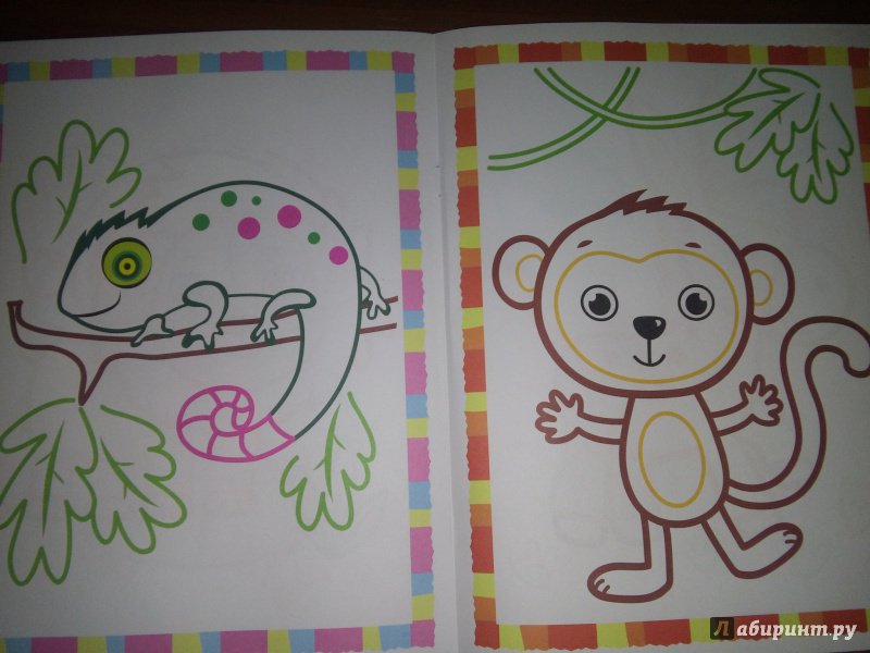 ОписаниеВ этой книжке-раскраске цветные контуры помогут малышу сориентироваться в выборе нужного карандаша для раскрашивания картинки. Сами картинки выполнены очень крупно, чтобы маленьким пальчикам было не так сложно, а забавные и яркие персонажи сделают творческий процесс увлекательнее и веселее.2-е издание.В этой книжке-раскраске цветные контуры помогут малышу сориентироваться в выборе нужного карандаша для раскрашивания картинки. Сами картинки выполнены очень крупно, чтобы маленьким пальчикам было не так сложно, а забавные и яркие персонажи сделают творческий процесс увлекательнее и веселее.2-е издание.