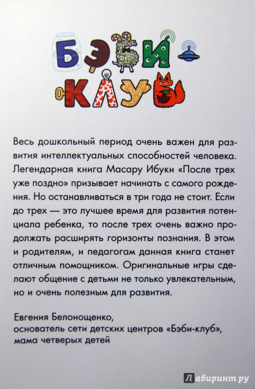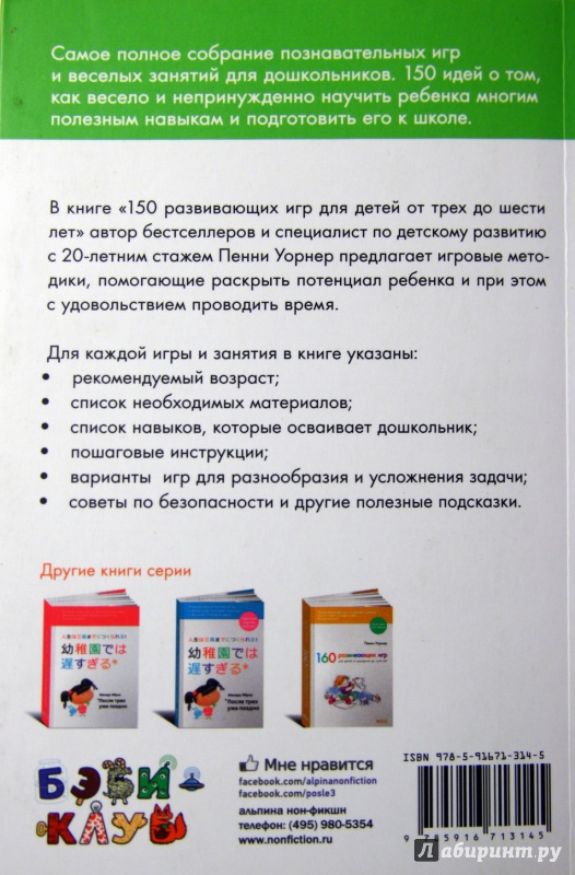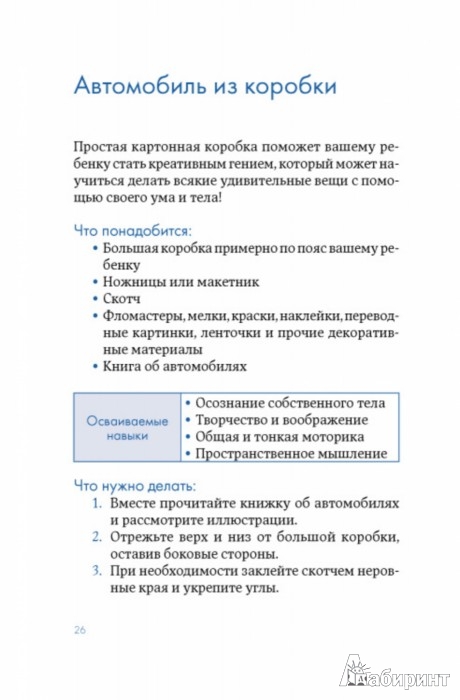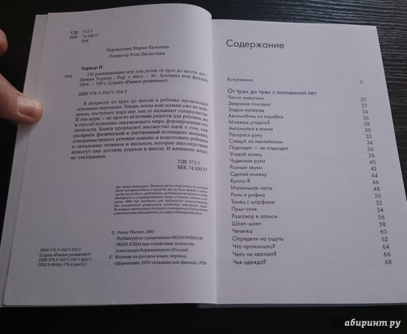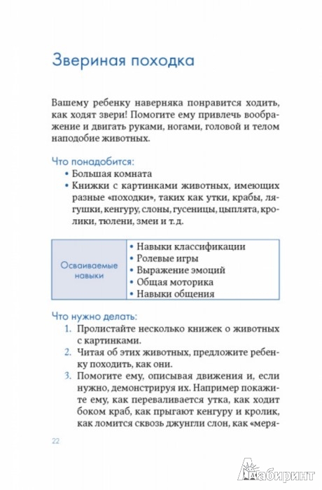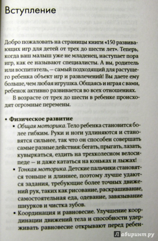 ОписаниеВ возрасте от трех до шести в ребенке происходят огромные перемены. Теперь, когда ваш малыш уже не младенец, наступает пора игр, как ее называют специалисты. И эти игры - не просто источник радости для ребенка, но и способ познания окружающего мира, формирования его личности. Книга предлагает множество идей о том, как раскрыть физический и умственный потенциал малыша, совершенствовать речевые навыки и подготовить ребенка к овладению чтением и письмом, которые впоследствии помогут ему достичь успехов в школе. И начинать надо, не откладывая.В возрасте от трех до шести в ребенке происходят огромные перемены. Теперь, когда ваш малыш уже не младенец, наступает пора игр, как ее называют специалисты. И эти игры - не просто источник радости для ребенка, но и способ познания окружающего мира, формирования его личности. Книга предлагает множество идей о том, как раскрыть физический и умственный потенциал малыша, совершенствовать речевые навыки и подготовить ребенка к овладению чтением и письмом, которые впоследствии помогут ему достичь успехов в школе. И начинать надо, не откладывая.