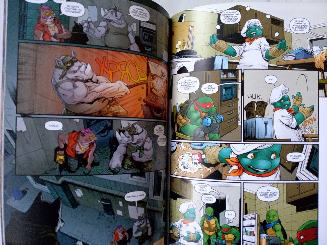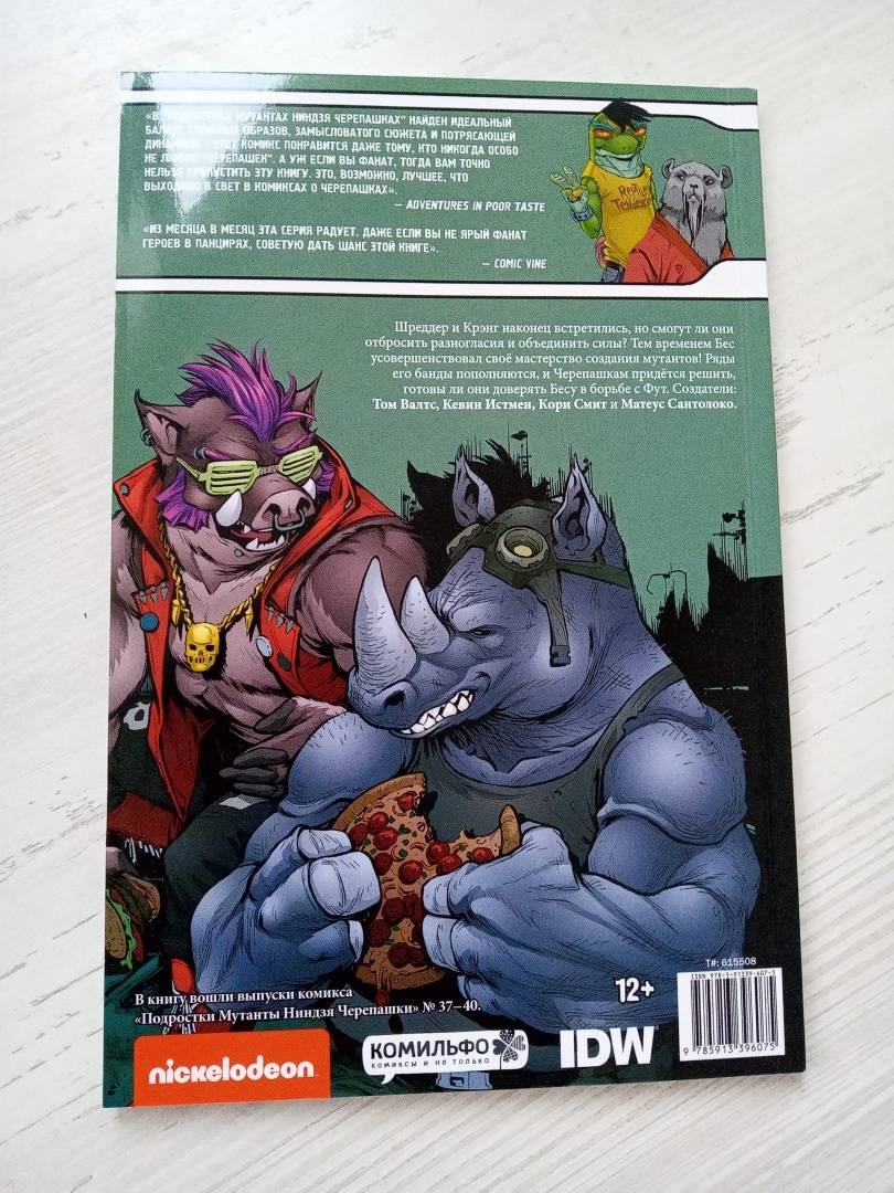 ОписаниеЧерепашки и Сплинтер уже одну книгу назад вернулись из Нортгемптона, а обстоятельства продолжают накаляться. Крэнг и Шреддер пытаются заключить хрупкий союз, но что из этого выйдет? Тем временем Старый Бес наращивает мощь и собирает свою армию могучим мутантов. И, естественно, не обойдётся без Бибопа и Рокстеди - вы только посмотрите как они здесь нарисованы. Только ради этих милых идиотов стоит купить этот том. Мы приближаемся к новому большому событию во вселенной Черепашек, оно будет буквально через один том. И это будет чертовски эпично, а потому не отставайте от основной серии.Черепашки и Сплинтер уже одну книгу назад вернулись из Нортгемптона, а обстоятельства продолжают накаляться. Крэнг и Шреддер пытаются заключить хрупкий союз, но что из этого выйдет? Тем временем Старый Бес наращивает мощь и собирает свою армию могучим мутантов. И, естественно, не обойдётся без Бибопа и Рокстеди - вы только посмотрите как они здесь нарисованы. Только ради этих милых идиотов стоит купить этот том. Мы приближаемся к новому большому событию во вселенной Черепашек, оно будет буквально через один том. И это будет чертовски эпично, а потому не отставайте от основной серии.