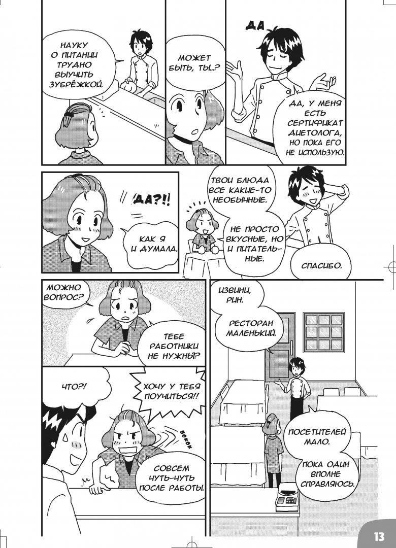 ОписаниеПростой, последовательный, наглядный и необременительный путь изучения правильного питания! Студентка кафедры диетологии Амино Рин никак не может усвоить учебную программу и устраивается на подработку в ресторан, что очень помогает ей в учёбе. Вместе с героиней вы не только примете участие в конкурсе кулинарного искусства, но и узнаете, почему мы должны питаться, усвоите основные понятия науки о питании и научитесь составлять свой собственный сбалансированный рацион.Базовые знания науки о питании, несомненно, будут способствовать вашему здоровью и активности, а также помогут более критично относиться к различной информации о здоровом питании, которая обрушивается на нас.Воспринимайте основы науки о питании, наслаждаясь увлекательным сюжетом!Простой, последовательный, наглядный и необременительный путь изучения правильного питания! Студентка кафедры диетологии Амино Рин никак не может усвоить учебную программу и устраивается на подработку в ресторан, что очень помогает ей в учёбе. Вместе с героиней вы не только примете участие в конкурсе кулинарного искусства, но и узнаете, почему мы должны питаться, усвоите основные понятия науки о питании и научитесь составлять свой собственный сбалансированный рацион.Базовые знания науки о питании, несомненно, будут способствовать вашему здоровью и активности, а также помогут более критично относиться к различной информации о здоровом питании, которая обрушивается на нас.Воспринимайте основы науки о питании, наслаждаясь увлекательным сюжетом!