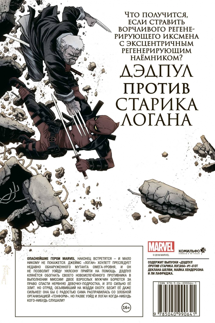 ОписаниеОпаснейшие герои marvel наконец встретятся - и мало никому не покажется. Джеймс "Логан" Хоулетт преследует недавно обнаруженного мутанта омега-уровня, и он не позволит Уэйду Уилсону прийти на помощь. Дэдпул клянётся обогнать своего новоиспечённого противника в выполнении миссии! Двое взрослых мужчин борются за право спасти нервную девочку-подростка, и это сильно её злит. Но отряд, объявивший на Мэдди охоту, бесит её даже сильнее! Она бы с радостью сама расправилась со злобной организацией "генформ", но разве Уэйд и Логан когда-нибудь кого-нибудь слушали?Содержит выпуски "Дэдпул против Старика Логана" #1-5 от Деклана Шелви, Майка Хендерсона и Ли Лафриджа.Опаснейшие герои marvel наконец встретятся - и мало никому не покажется. Джеймс "Логан" Хоулетт преследует недавно обнаруженного мутанта омега-уровня, и он не позволит Уэйду Уилсону прийти на помощь. Дэдпул клянётся обогнать своего новоиспечённого противника в выполнении миссии! Двое взрослых мужчин борются за право спасти нервную девочку-подростка, и это сильно её злит. Но отряд, объявивший на Мэдди охоту, бесит её даже сильнее! Она бы с радостью сама расправилась со злобной организацией "генформ", но разве Уэйд и Логан когда-нибудь кого-нибудь слушали?Содержит выпуски "Дэдпул против Старика Логана" #1-5 от Деклана Шелви, Майка Хендерсона и Ли Лафриджа.