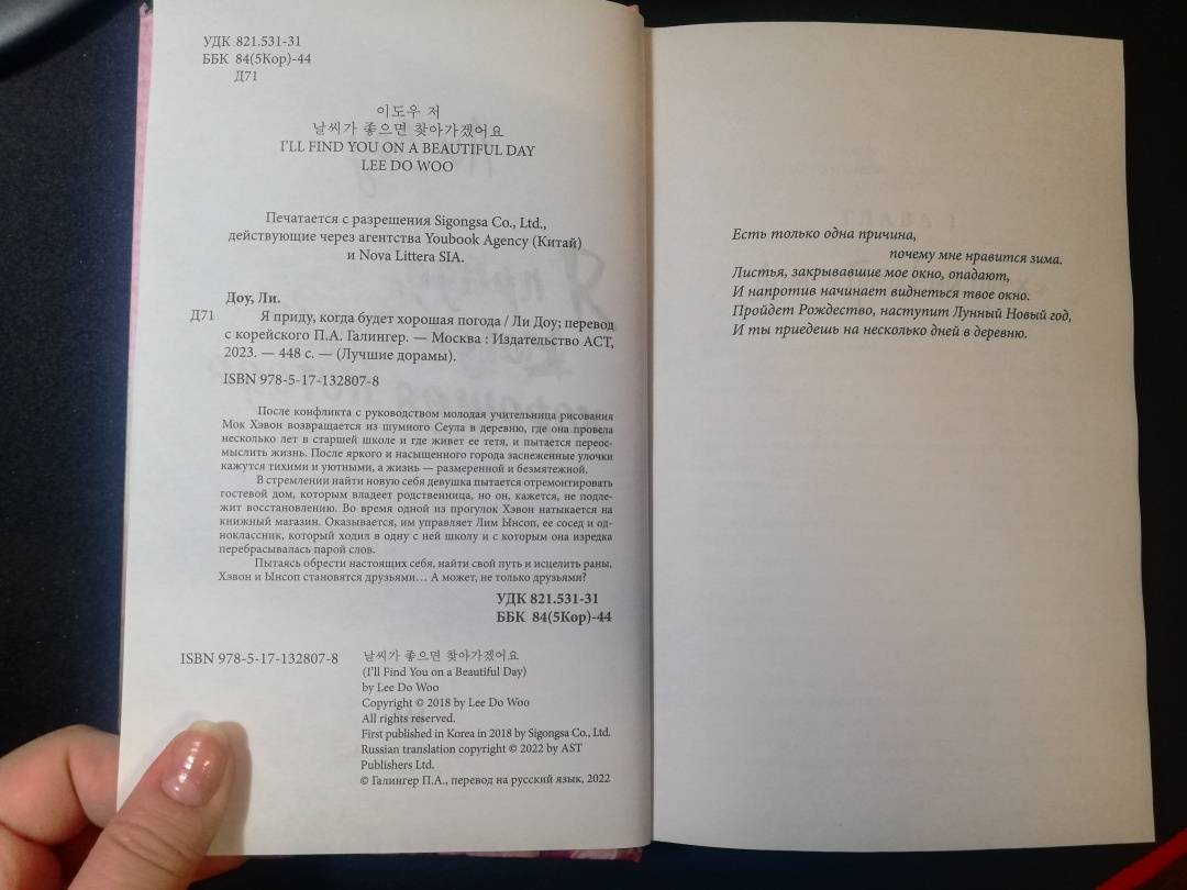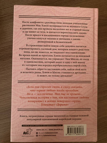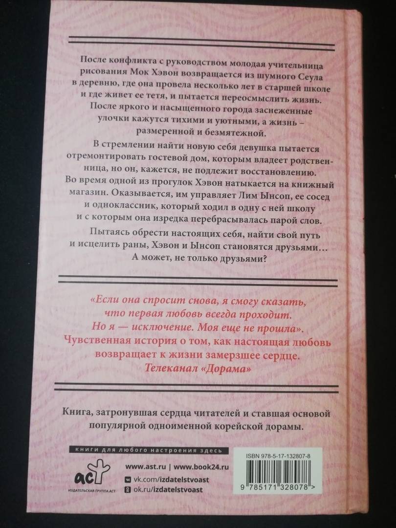 ОписаниеПосле конфликта с руководством молодая учительница рисования Мок Хэвон возвращается из шумного Сеула в деревню, где она провела несколько лет в старшей школе и где живет ее тетя, и пытается переосмыслить жизнь. После яркого и насыщенного города заснеженные улочки кажутся тихими и уютными, а жизнь - размеренной и безмятежной.В стремлении найти новую себя девушка пытается отремонтировать гостевой дом, которым владеет родственница, но он, кажется, не подлежит восстановлению. Во время одной из прогулок Хэвон натыкается на книжный магазин. Оказывается, им управляет Лим Ынсоп, ее сосед и одноклассник, который ходил в одну с ней школу и с которым она изредка перебрасывалась парой слов.Пытаясь обрести настоящих себя, найти свой путь и исцелить раны, Хэвон и Ынсоп становятся друзьями… А может, не только друзьями?После конфликта с руководством молодая учительница рисования Мок Хэвон возвращается из шумного Сеула в деревню, где она провела несколько лет в старшей школе и где живет ее тетя, и пытается переосмыслить жизнь. После яркого и насыщенного города заснеженные улочки кажутся тихими и уютными, а жизнь - размеренной и безмятежной.В стремлении найти новую себя девушка пытается отремонтировать гостевой дом, которым владеет родственница, но он, кажется, не подлежит восстановлению. Во время одной из прогулок Хэвон натыкается на книжный магазин. Оказывается, им управляет Лим Ынсоп, ее сосед и одноклассник, который ходил в одну с ней школу и с которым она изредка перебрасывалась парой слов.Пытаясь обрести настоящих себя, найти свой путь и исцелить раны, Хэвон и Ынсоп становятся друзьями… А может, не только друзьями?