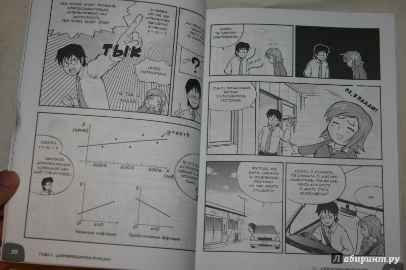 ОписаниеНорико - начинающий репортер. После обучения ее направили в одно из отделений газеты "Асагакэ Таймс". Норико жаждет освещать в своих репортажах самые волнующие проблемы мировой политики и экономики, но хватит ли ей для этого опыта и знаний? Ее непосредственный начальник, Сэки-сан, решил научить ее анализировать происходящие в политике и экономике события используя математику. Читая эту книгу, вы вместе с Норико будете осваивать основы дифференциального и интегрального исчисления и поймете, что эти знания пригодятся не только для проведения сложных научных расчетов. Приводя примеры из реальной жизни, такие как вероятность событий, кривые спроса и предложения в экономике, загрязнение окружающей среды и даже плотность распределения спирта в стакане, автор показывает, что производные и интегралы помогают глубже разобраться в самых разных проблемах, возникающих в нашей жизни. В ходе обучения вы узнаете: - что такое производная и как с ее помощью определять скорость изменения функции; - как связаны между собой производная и интеграл; - как интегрировать и дифференцировать сложные функции; - что такое частные производные, и как с их помощью находить интегралы и производные функций нескольких переменных; - как с помощью разложения в ряд Тейлора можно заменить трудную для анализа функцию степенным многочленом. Книга будет полезна учащимся старших классов школ, студентам вузов, а также всем, кто интересуется математикой и хочет, чтобы обучение было легким и увлекательным.СвернутьНорико - начинающий репортер. После обучения ее направили в одно из отделений газеты "Асагакэ Таймс". Норико жаждет освещать в своих репортажах самые волнующие проблемы мировой политики и экономики, но хватит ли ей для этого опыта и знаний? Ее непосредственный начальник, Сэки-сан, решил научить ее анализировать происходящие в политике и экономике события используя математику. Читая эту книгу, вы вместе с Норико будете осваивать основы дифференциального и интегрального исчисления и поймете, что эти знания пригодятся не только для проведения сложных научных расчетов. Приводя примеры из реальной жизни, такие как вероятность событий, кривые спроса и предложения в экономике, загрязнение окружающей среды и даже плотность распределения спирта в стакане, автор показывает, что производные и интегралы помогают глубже разобраться в самых разных проблемах, возникающих в нашей жизни. В ходе обучения вы узнаете: - что такое производная и как с ее помощью определять скорость изменения функции; - как связаны между собой производная и интеграл; - как интегрировать и дифференцировать сложные функции; - что такое частные производные, и как с их помощью находить интегралы и производные функций нескольких переменных; - как с помощью разложения в ряд Тейлора можно заменить трудную для анализа функцию степенным многочленом. Книга будет полезна учащимся старших классов школ, студентам вузов, а также всем, кто интересуется математикой и хочет, чтобы обучение было легким и увлекательным.СвернутьСвернуть