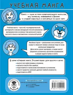 ОписаниеУчебная манга - новая серия книг издательства АСТ. Манга - одна из форм изобразительного искусства, вид комиксов, появившийся в Японии и ставший известным и популярным по всему миру.Учебная манга - простой, последовательный, наглядный и совсем нетрудный способ изложения материала всех основных тем школьного курса русского языка и математики в начальной школе.Весёлые герои - ровесники младших школьников и их учителя, расскажут и объяснят любую сложную тему по всем школьным предметам. Дети легко усвоят материал, а также смогут закрепить усвоенное, выполняя упражнения и решая задачи прямо в книге.В серии "Учебная манга. Русский язык" дети быстро и легко:- выучат все орфограммы и правила- научаться писать без ошибок- подготовятся к написанию изложения и сочинения- смогут грамотно написать диктант любой сложности- подготовятся к ВПР.Для младшего школьного возраста.Учебная манга - новая серия книг издательства АСТ. Манга - одна из форм изобразительного искусства, вид комиксов, появившийся в Японии и ставший известным и популярным по всему миру.Учебная манга - простой, последовательный, наглядный и совсем нетрудный способ изложения материала всех основных тем школьного курса русского языка и математики в начальной школе.Весёлые герои - ровесники младших школьников и их учителя, расскажут и объяснят любую сложную тему по всем школьным предметам. Дети легко усвоят материал, а также смогут закрепить усвоенное, выполняя упражнения и решая задачи прямо в книге.В серии "Учебная манга. Русский язык" дети быстро и легко:- выучат все орфограммы и правила- научаться писать без ошибок- подготовятся к написанию изложения и сочинения- смогут грамотно написать диктант любой сложности- подготовятся к ВПР.Для младшего школьного возраста.