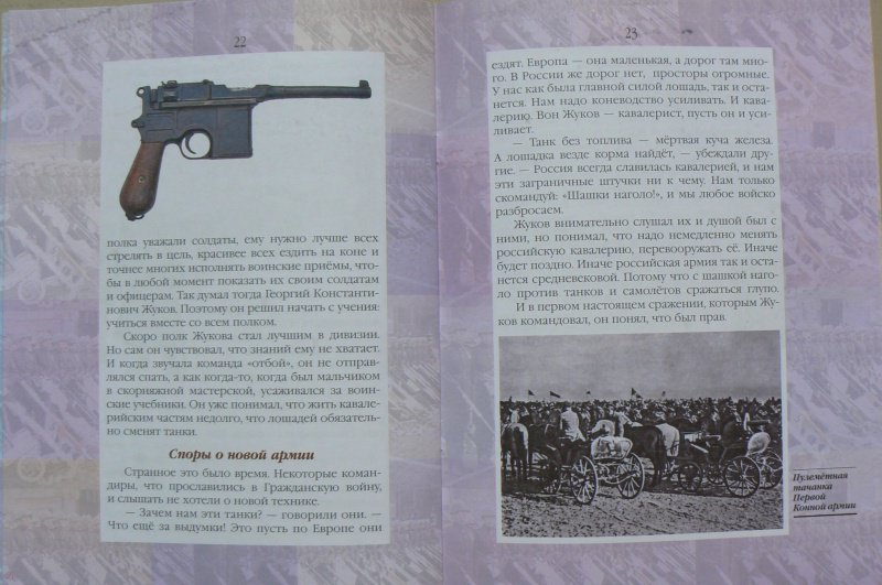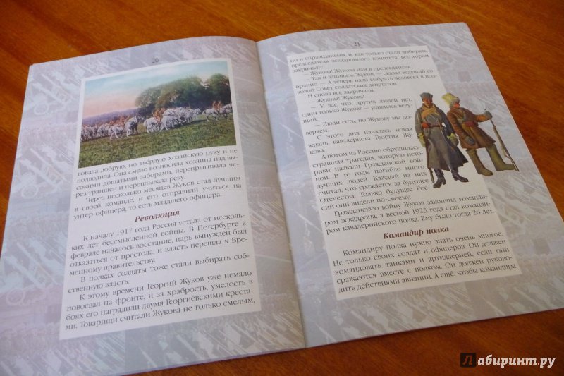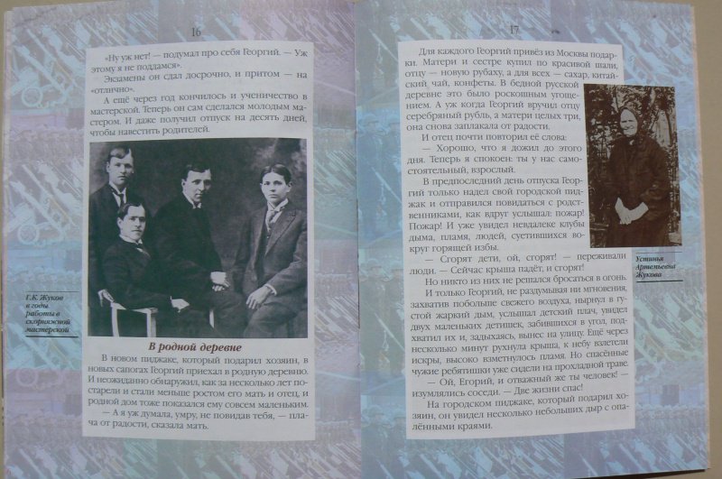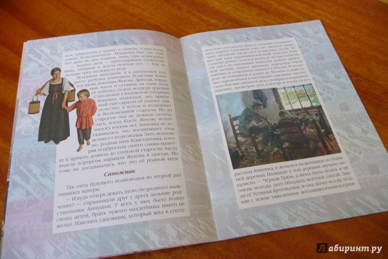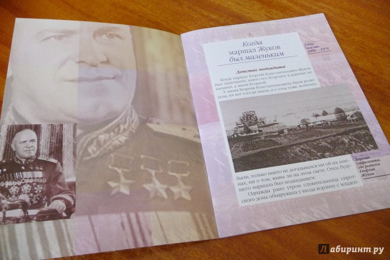 ОписаниеЖукова не зря называют маршалом Победы. Он руководил самыми тяжёлыми и знаменитыми сражениями Великой Отечественной войны: битвами за Ленинград,Москву, Сталинград, битвой на Курской дуге, принимал капитуляцию нацистской Германии и Парад Победы на Красной площади. Но мало кто знает о трудных годах его детства и юности. Сын подкидыша, выросший в бедной русской деревне,он закончил с отличием церковно-приходскую школу и, уехав в Москву, стал подмастерьем у скорняка, а потом известным шубным мастером. Однако всё смешали события начала XX века - Первая мировая и Гражданская войны.Здесь простой крестьянский парень превратился в талантливого воина и полководца.Рассказ о детстве маршала Победы входит в серию книг Валерия Воскобойникова "Жизнь замечательных детей", отмеченную многими почётными наградами, и в том числеГосударственной премией Правительства России в области культуры.Для среднего школьного возраста.Жукова не зря называют маршалом Победы. Он руководил самыми тяжёлыми и знаменитыми сражениями Великой Отечественной войны: битвами за Ленинград,Москву, Сталинград, битвой на Курской дуге, принимал капитуляцию нацистской Германии и Парад Победы на Красной площади. Но мало кто знает о трудных годах его детства и юности. Сын подкидыша, выросший в бедной русской деревне,он закончил с отличием церковно-приходскую школу и, уехав в Москву, стал подмастерьем у скорняка, а потом известным шубным мастером. Однако всё смешали события начала XX века - Первая мировая и Гражданская войны.Здесь простой крестьянский парень превратился в талантливого воина и полководца.Рассказ о детстве маршала Победы входит в серию книг Валерия Воскобойникова "Жизнь замечательных детей", отмеченную многими почётными наградами, и в том числеГосударственной премией Правительства России в области культуры.Для среднего школьного возраста.