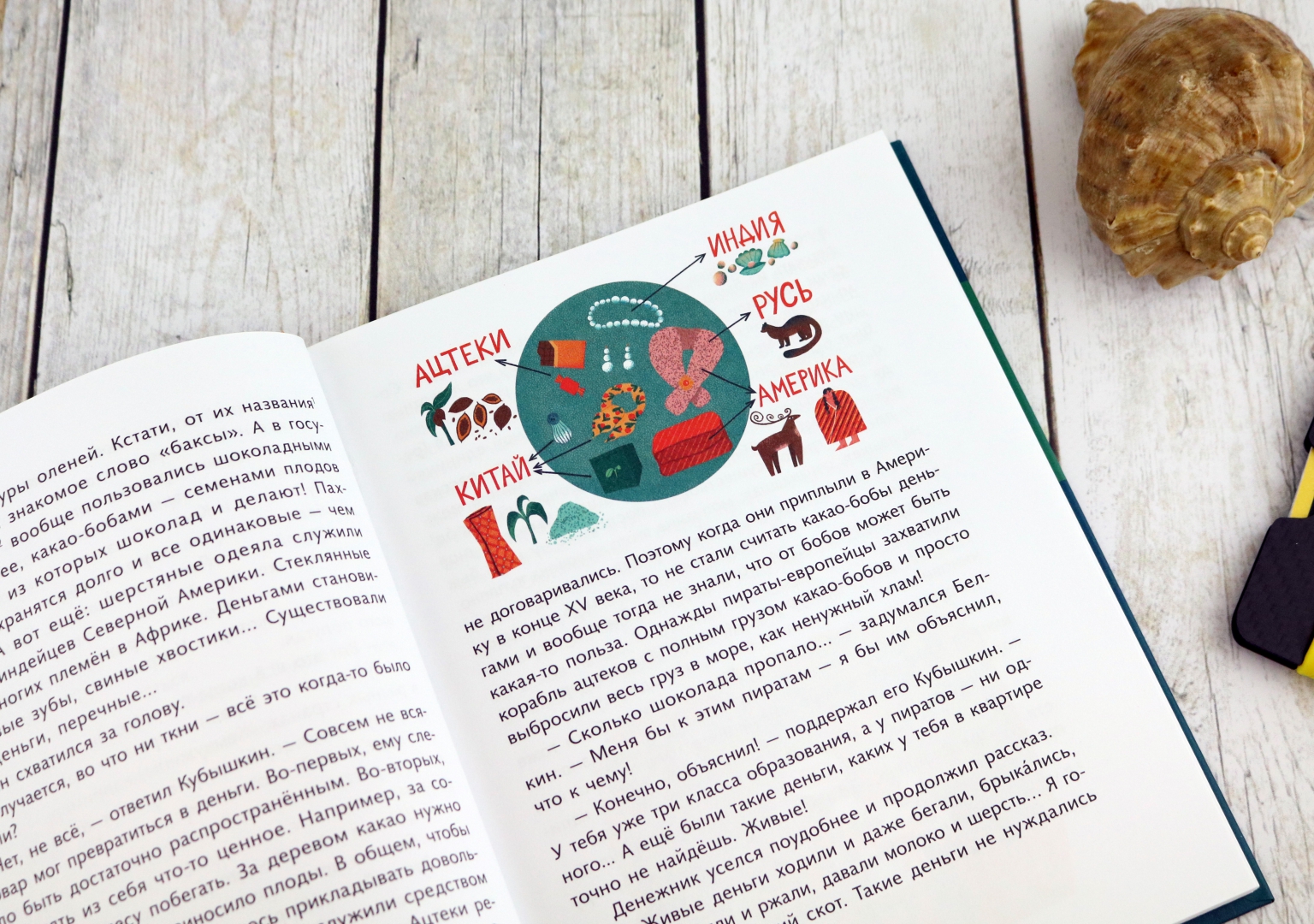 ОписаниеОднажды Костя Белкин подобрал на улице потерянный кошелёк... И познакомился с Тимофеем Кубышкиным, потомственным денежником. Новый друг Кости живёт под Монетным двором, умеет путешествовать под землёй и старается вести здоровый образ жизни! Ведь когда денежник болеет, монеты и купюры липнут к нему, как металл к магниту. А ещё Тимофей рассказывает увлекательные "денежные" истории. Косте предстоит не только узнать, чем люди расплачивались с древности до наших дней, но и совершить вместе с Кубышкиным путешествие туда, где по-прежнему принимают деньги-ракушки!Для среднего школьного возраста.Однажды Костя Белкин подобрал на улице потерянный кошелёк... И познакомился с Тимофеем Кубышкиным, потомственным денежником. Новый друг Кости живёт под Монетным двором, умеет путешествовать под землёй и старается вести здоровый образ жизни! Ведь когда денежник болеет, монеты и купюры липнут к нему, как металл к магниту. А ещё Тимофей рассказывает увлекательные "денежные" истории. Косте предстоит не только узнать, чем люди расплачивались с древности до наших дней, но и совершить вместе с Кубышкиным путешествие туда, где по-прежнему принимают деньги-ракушки!Для среднего школьного возраста.