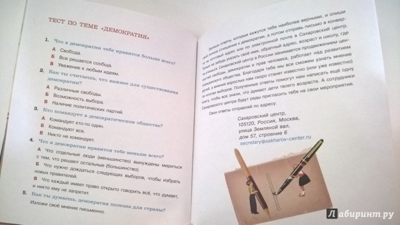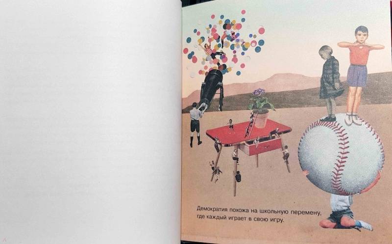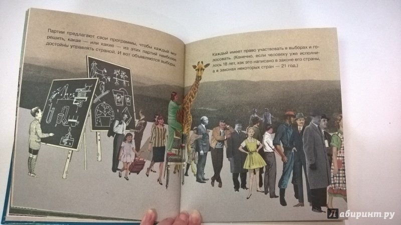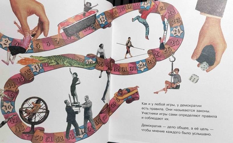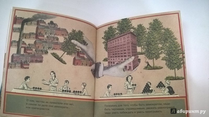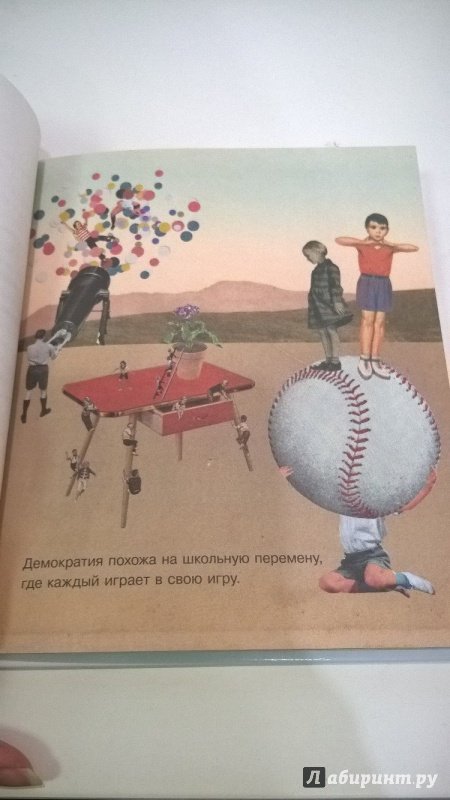 ОписаниеКнига наглядно и просто рассказывает детям о понятии демократии, раскрывает его основные принципы и идеи. Авторы сравнивают демократию с игрой, в которой при соблюдении правил выигрывают все! Пользуясь свободами, человек не должен забывать о своих гражданских обязанностях. Тогда мир будет становиться лучше! Маленьким читателям книга поможет разобраться в важном и сложном понятии, а взрослым - проверить свои принципы и убеждения."Что такое демократия?" - одна из четырех книг в серии "Книги завтрашнего дня". Серия рассказывает о политике и социологии самым юным читателям - ученикам начальной школы. Впервые серия вышла в 1977-1978 годах в Барселоне. За два года до её выхода умер испанский диктатор Франко, и Испания переживала первые демократические перемены. Серия была недавно переиздана с новыми иллюстрациями в Испании и получила высшую премию Болонской книжной ярмарки за лучший nonfiction проект для детей.Об авторах:Художник Марта Пино: Оказавшись в каком-нибудь городе, Марта прочёсывает блошиные рынки и букинистические лавочки, где находит настоящие сокровища: старые журналы с чёрно-белыми иллюстрациями, плакаты и афиши с красивыми буквами, фотографии, на которых изображены незнакомые люди. (Интересно, кто они? Рассматривая их лица, Марта пытается представить, какова была жизнь каждого из них.) Помимо коллажей, она обожает всё, что связано с печатью - особым миром, который продолжает развиваться и совершенствоваться благодаря вкладу некоторых знаменитых людей, а также множества тех, чьи имена сейчас уже никто не вспомнит. Её маленькая мастерская, в которой она работает и экспериментирует, называется "Неторопливые ремесла".Группа "Плантель" - это группа испанских журналистов, социологов и политиков, которые собрались в середине 70-х годов специально для того, чтобы сделать серию злободневных книг о политике для самых юных читателей.Для дошкольного, младшего и среднего школьного возраста.СвернутьКнига наглядно и просто рассказывает детям о понятии демократии, раскрывает его основные принципы и идеи. Авторы сравнивают демократию с игрой, в которой при соблюдении правил выигрывают все! Пользуясь свободами, человек не должен забывать о своих гражданских обязанностях. Тогда мир будет становиться лучше! Маленьким читателям книга поможет разобраться в важном и сложном понятии, а взрослым - проверить свои принципы и убеждения."Что такое демократия?" - одна из четырех книг в серии "Книги завтрашнего дня". Серия рассказывает о политике и социологии самым юным читателям - ученикам начальной школы. Впервые серия вышла в 1977-1978 годах в Барселоне. За два года до её выхода умер испанский диктатор Франко, и Испания переживала первые демократические перемены. Серия была недавно переиздана с новыми иллюстрациями в Испании и получила высшую премию Болонской книжной ярмарки за лучший nonfiction проект для детей.Об авторах:Художник Марта Пино: Оказавшись в каком-нибудь городе, Марта прочёсывает блошиные рынки и букинистические лавочки, где находит настоящие сокровища: старые журналы с чёрно-белыми иллюстрациями, плакаты и афиши с красивыми буквами, фотографии, на которых изображены незнакомые люди. (Интересно, кто они? Рассматривая их лица, Марта пытается представить, какова была жизнь каждого из них.) Помимо коллажей, она обожает всё, что связано 