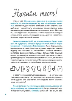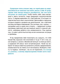 ОписаниеМы все - ты, твои друзья, родные и супергерои в кино - действуем согласно нашим внутренним правилам и принципам, и нам кажется, что эти правила не противоречат друг другу. На самом деле мы часто смешиваем разные взгляды: о любви и дружбе можем думать как христиане, о смерти как индуисты, а о свободе и государстве как светские гуманисты.Книга "Верю - не верю" построена вокруг 28 вопросов - о смысле жизни, справедливости, личных границах, самооценке, отношениях - обо всём, что нас всех волнует. На каждый вопрос отвечают 10 анонимных мудрецов - представители 6 религий и 4 философий, они спорят, соглашаются и дополняют друг друга, а тебе нужно выбрать ответ, с которым ты больше всего согласен. Собрав все свои ответы, ты поймёшь, какие мировоззрения тебе ближе всего.1-е издание.Мы все - ты, твои друзья, родные и супергерои в кино - действуем согласно нашим внутренним правилам и принципам, и нам кажется, что эти правила не противоречат друг другу. На самом деле мы часто смешиваем разные взгляды: о любви и дружбе можем думать как христиане, о смерти как индуисты, а о свободе и государстве как светские гуманисты.Книга "Верю - не верю" построена вокруг 28 вопросов - о смысле жизни, справедливости, личных границах, самооценке, отношениях - обо всём, что нас всех волнует. На каждый вопрос отвечают 10 анонимных мудрецов - представители 6 религий и 4 философий, они спорят, соглашаются и дополняют друг друга, а тебе нужно выбрать ответ, с которым ты больше всего согласен. Собрав все свои ответы, ты поймёшь, какие мировоззрения тебе ближе всего.1-е издание.