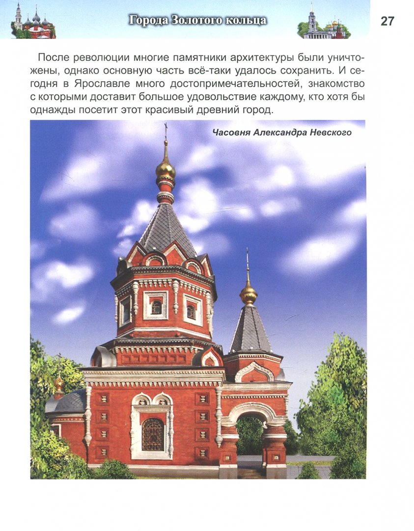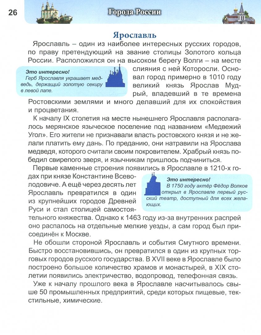 ОписаниеВ России много интересных городов. Одни из них, основанные в глубокой древности, входят в популярный туристический маршрут "Золотое кольцо", у других славное боевое прошлое, а некоторые являются популярными курортами. Об этих городах вы узнаете из нашей книги.В России много интересных городов. Одни из них, основанные в глубокой древности, входят в популярный туристический маршрут "Золотое кольцо", у других славное боевое прошлое, а некоторые являются популярными курортами. Об этих городах вы узнаете из нашей книги.