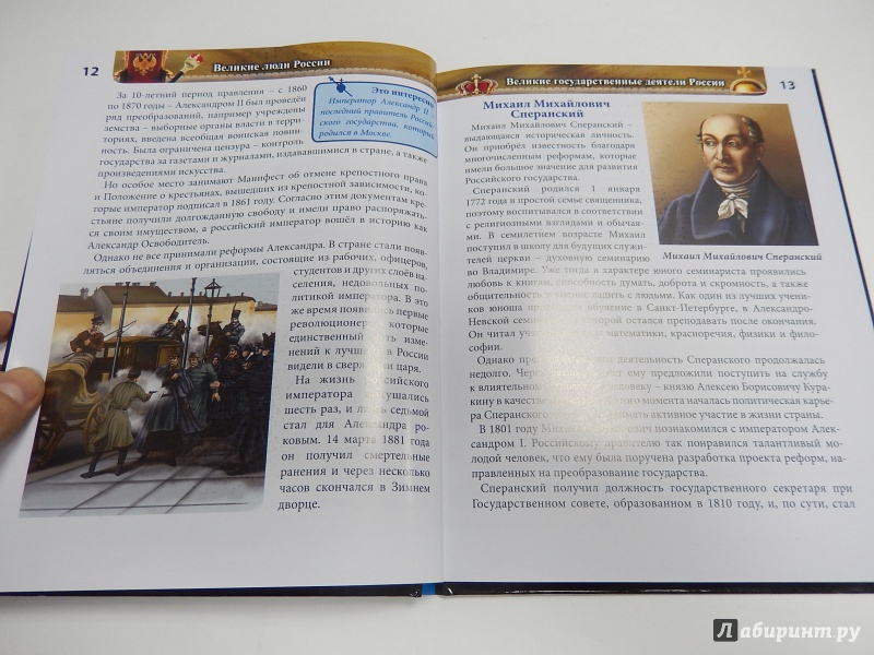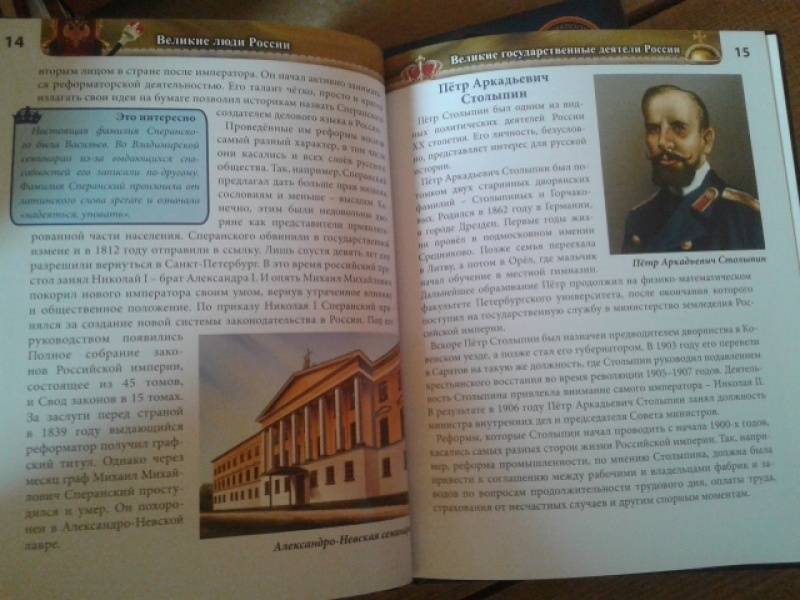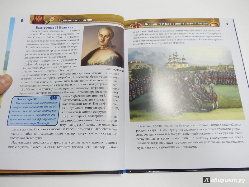 ОписаниеИнтересная информация, занимательные факты, яркие иллюстрации, широкий круг тем - всё это вы найдёте в данной энциклопедии! Вы узнаете самые интересные факты из жизни великих российских государственных деятелей, учёных, путешественников, полководцев, поэтов, писателей и художников. К примеру, кто основал могучую Российскую империю, кому из учёных пришлось увозить своё вознаграждение на двух телегах. Такой подарок обязательно заинтересует ребёнка, да и взрослые непременно откроют для себя что-то новое.Для младшего и среднего школьного возраста.Интересная информация, занимательные факты, яркие иллюстрации, широкий круг тем - всё это вы найдёте в данной энциклопедии! Вы узнаете самые интересные факты из жизни великих российских государственных деятелей, учёных, путешественников, полководцев, поэтов, писателей и художников. К примеру, кто основал могучую Российскую империю, кому из учёных пришлось увозить своё вознаграждение на двух телегах. Такой подарок обязательно заинтересует ребёнка, да и взрослые непременно откроют для себя что-то новое.Для младшего и среднего школьного возраста.