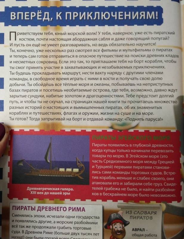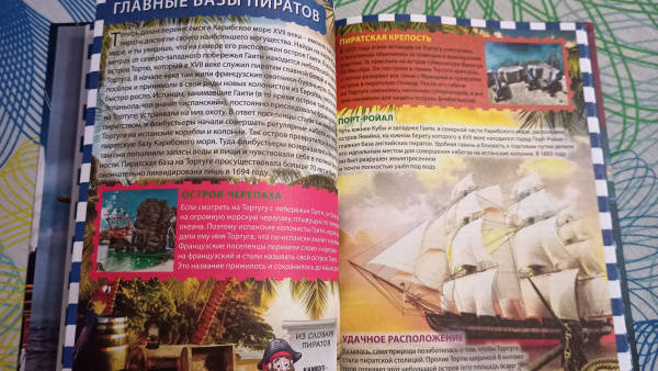 ОписаниеПредставляем новую серию детских энциклопедий, которая точно понравится вам и вашему ребёнку: небольшой удобный формат, краткая подача материала, только самые важные факты и занимательные истории, а также великолепные иллюстрации."Пираты" - это книга про знаменитых пиратов и их приключения, о пиратском оружии и кладах, о походах и сражениях.На страницах нашей энциклопедии вы узнаете, как пираты захватывали торговые суда, что такое "Весёлый Роджер", чем занимались пираты на корабле, где прятали захваченные сокровища.Представляем новую серию детских энциклопедий, которая точно понравится вам и вашему ребёнку: небольшой удобный формат, краткая подача материала, только самые важные факты и занимательные истории, а также великолепные иллюстрации."Пираты" - это книга про знаменитых пиратов и их приключения, о пиратском оружии и кладах, о походах и сражениях.На страницах нашей энциклопедии вы узнаете, как пираты захватывали торговые суда, что такое "Весёлый Роджер", чем занимались пираты на корабле, где прятали захваченные сокровища.