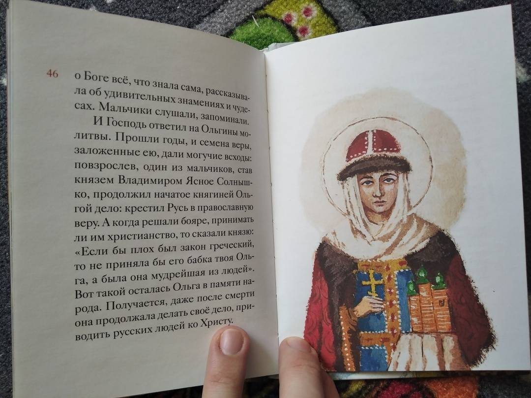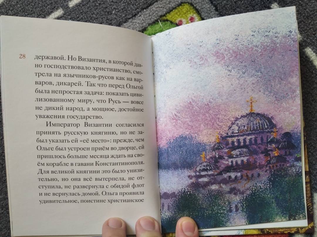 Описание"Житие равноапостольной княгини Ольги в пересказе для детей" - это история обращения нашего государства в христианскую веру, ведь Ольга была первым человеком, водрузившим крест на Руси. Но удивительна и личная история этой женщины, превратившейся из простой девушки в грозную правительницу, а из мстительной язычницы в смиренную христианку. Да, воистину нет ничего более удивительного, чем реальность, и сюжет жизни княгини Ольги захватывает больше, чем придуманная сказка.Мы переиздали в мягком переплете ваши любимые жития святых в пересказе для детей. Теперь цена этих книг стала еще доступнее. Вы можете легко собрать всю коллекцию, познакомить детей с самыми разными святыми.В книге вы найдете:увлекательный рассказ о жизни знаменитой святой, написанный доступным для детей языком;много важных смыслов и пример для подражания для юных христиан;талантливые и красочные иллюстрации художника Валерия Неручева.Кому будет интересна эта книга?детям разных возрастов;заботливым родителям, которые хотят зажечь в юном сердечке огонек живой веры, вырастить ребенка на правильных примерах;всем, кто ищет полезный подарок для своих крестников, племянников и внуков;учителям воскресных школ.Свернуть"Житие равноапостольной княгини Ольги в пересказе для детей" - это история обращения нашего государства в христианскую веру, ведь Ольга была первым человеком, водрузившим крест на Руси. Но удивительна и личная история этой женщины, превратившейся из простой девушки в грозную правительницу, а из мстительной язычницы в смиренную христианку. Да, воистину нет ничего более удивительного, чем реальность, и сюжет жизни княгини Ольги захватывает больше, чем придуманная сказка.Мы переиздали в мягком переплете ваши любимые жития святых в пересказе для детей. Теперь цена этих книг стала еще доступнее. Вы можете легко собрать всю коллекцию, познакомить детей с самыми разными святыми.В книге вы найдете:увлекательный рассказ о жизни знаменитой святой, написанный доступным для детей языком;много важных смыслов и пример для подражания для юных христиан;талантливые и красочные иллюстрации художника Валерия Неручева.Кому будет интересна эта книга?детям разных возрастов;заботливым родителям, которые хотят зажечь в юном сердечке огонек живой веры, вырастить ребенка на правильных примерах;всем, кто ищет полезный подарок для своих крестников, племянников и внуков;учителям воскресных школ.СвернутьСвернуть