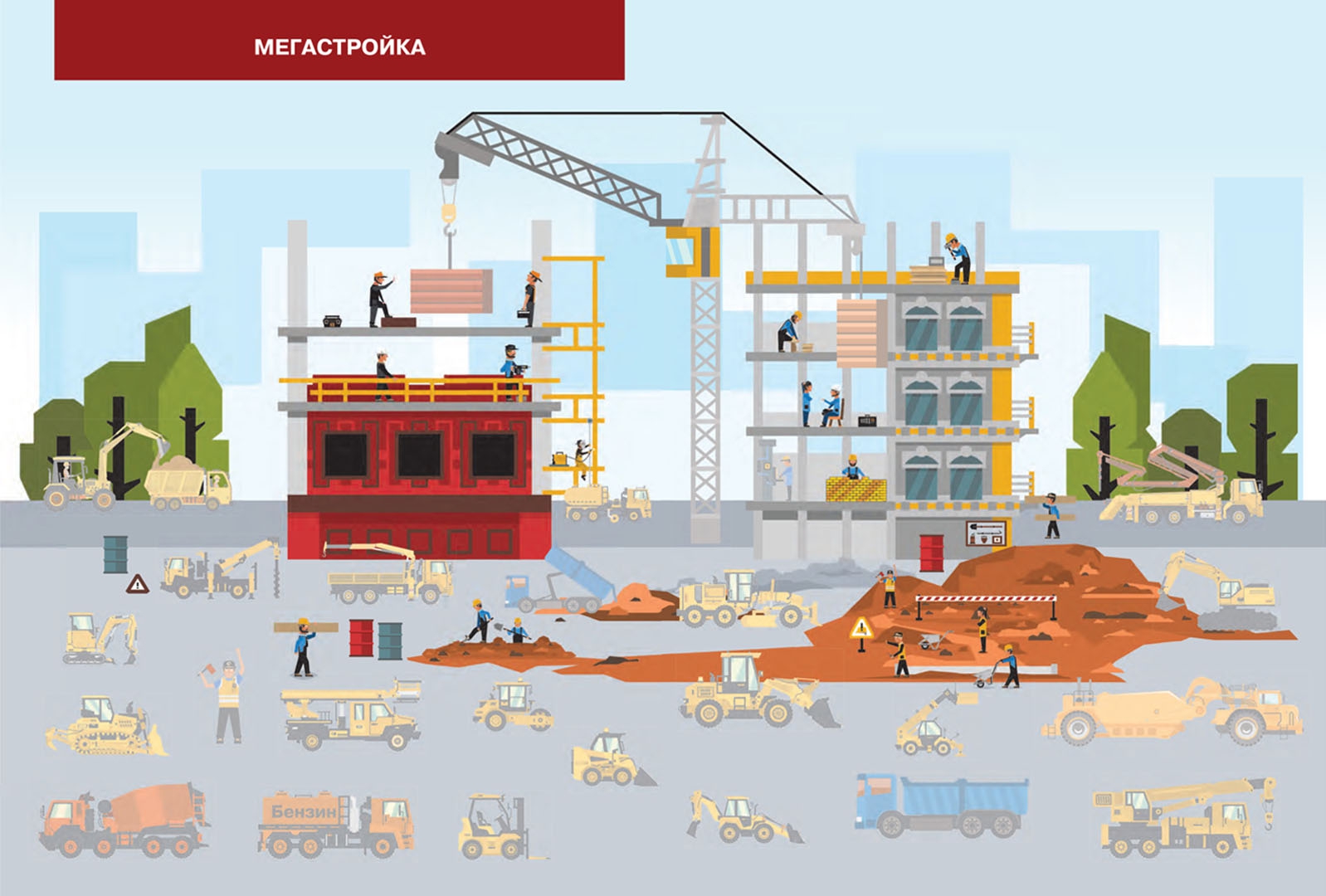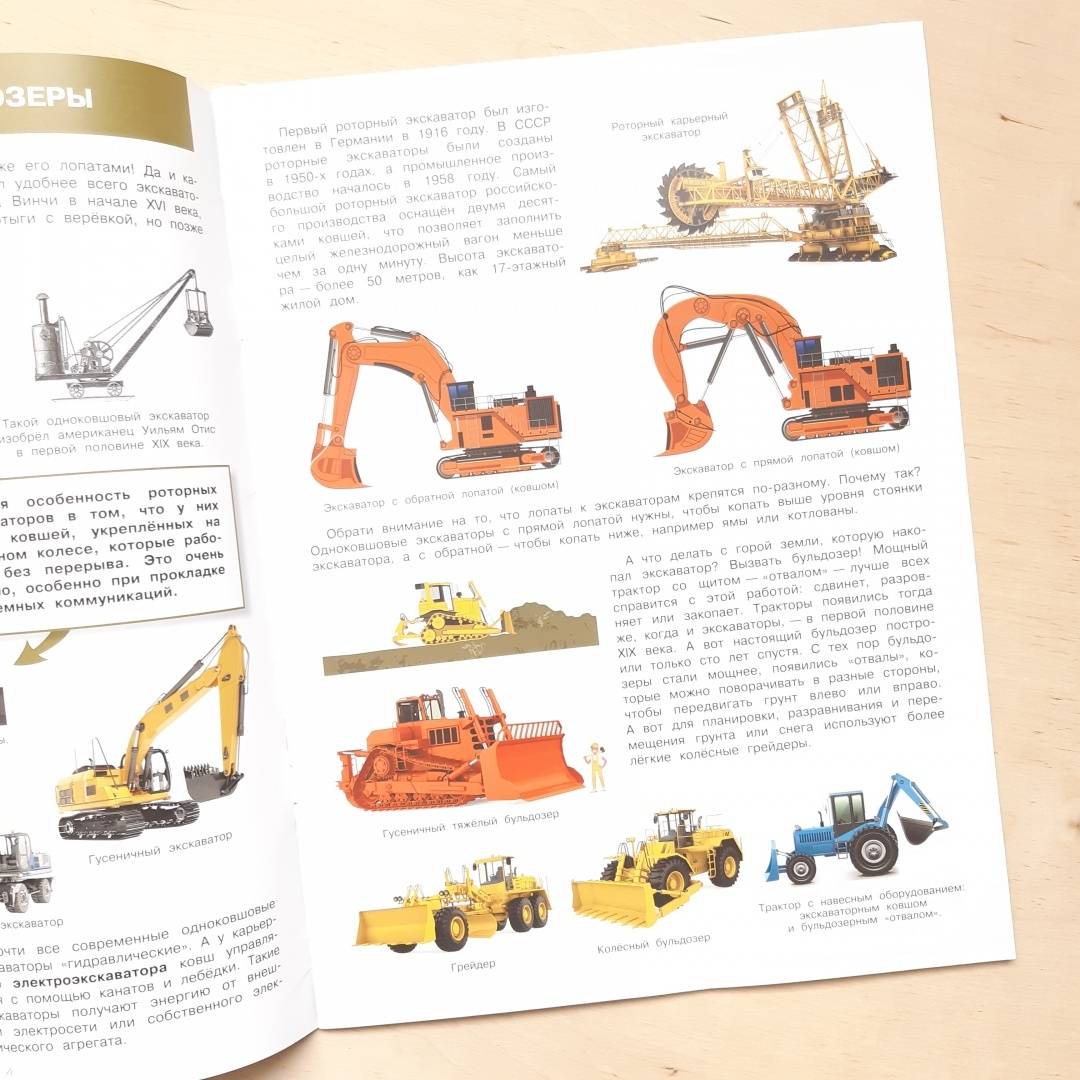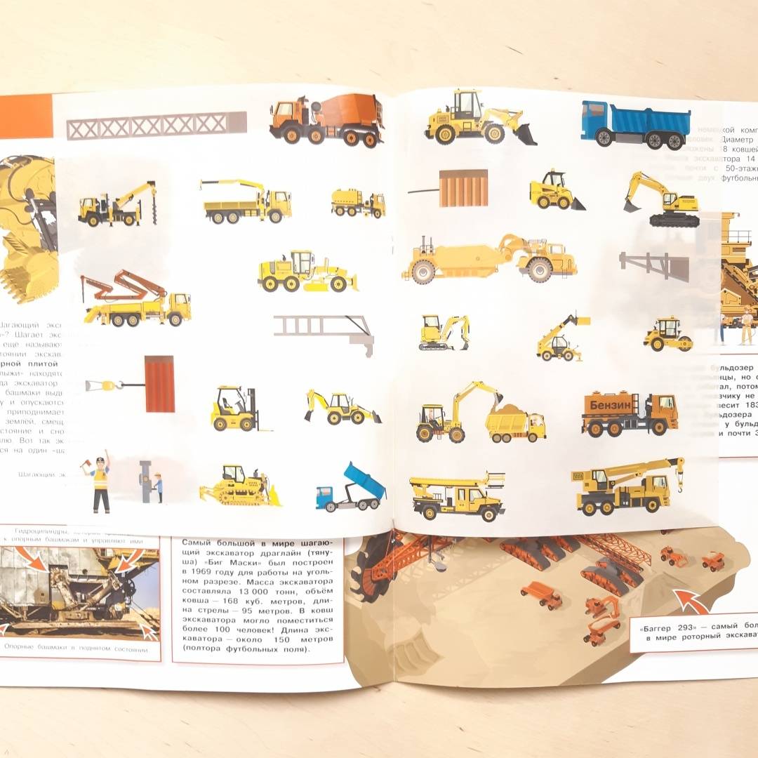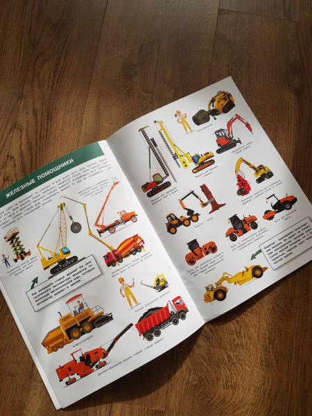 ОписаниеЛюди с давних времен старались облегчить ручной труд и сделать его более эффективным. Атлас познакомит ребенка со всем многообразием механических помощников человека - от древнего водоподъемного колеса до шагающего экскаватора-гиганта длиной с полтора футбольных поля.Как обычный корабельный червь подтолкнул к изобретению машины для прокладки тоннелей? И почему самый большой бульдозер в мире никогда не работал? Ответы на эти и другие вопросы подарит любознательному ребенку знакомство с энциклопедией. Множество интересных фактов, истории остроумных инженерных находок, красочные иллюстрации - все это надолго привлечет внимание ребенка.Прочитав эту энциклопедию, ребенок сможет стать во главе мегастройки и с помощью ярких многоразовых наклеек раздать задания своим железным работникам.Люди с давних времен старались облегчить ручной труд и сделать его более эффективным. Атлас познакомит ребенка со всем многообразием механических помощников человека - от древнего водоподъемного колеса до шагающего экскаватора-гиганта длиной с полтора футбольных поля.Как обычный корабельный червь подтолкнул к изобретению машины для прокладки тоннелей? И почему самый большой бульдозер в мире никогда не работал? Ответы на эти и другие вопросы подарит любознательному ребенку знакомство с энциклопедией. Множество интересных фактов, истории остроумных инженерных находок, красочные иллюстрации - все это надолго привлечет внимание ребенка.Прочитав эту энциклопедию, ребенок сможет стать во главе мегастройки и с помощью ярких многоразовых наклеек раздать задания своим железным работникам.