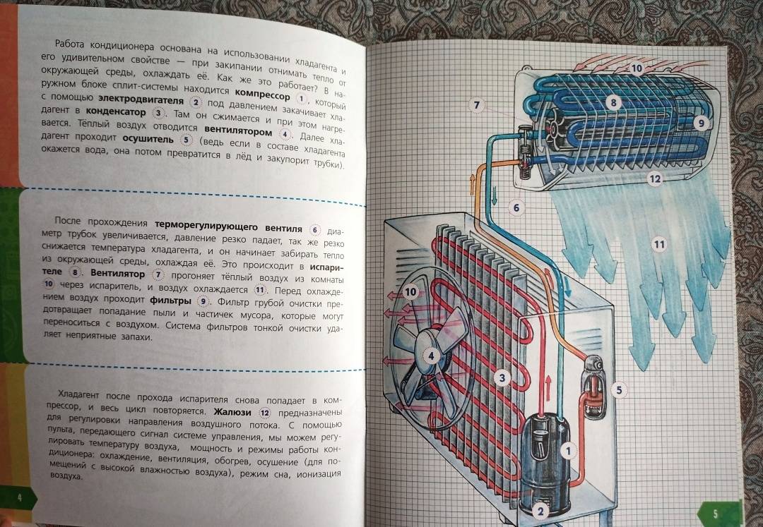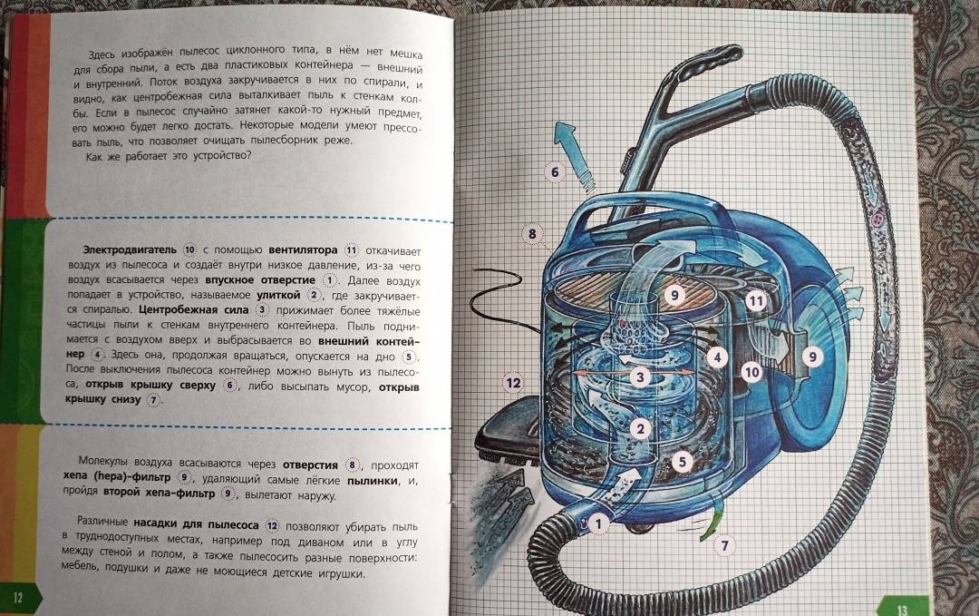 ОписаниеСтраницы этой маленькой книжки действительно волшебные. Сначала они показывают разные виды техники снаружи, как мы привыкли их видеть, а затем их устройство внутри. Ребёнок может разрезать странички на три части и рассмотреть по ярусам, как устроен пылесос и холодильник, или что такое сплит-система, а также прочесть небольшой текст, объясняющий принцип работы различных деталей. Эта книга расскажет, как устроены фен, стиральная машина, телефон, фотоаппарат, кондиционер, холодильник, пылесос и микроскоп.Для младшего школьного возраста.Страницы этой маленькой книжки действительно волшебные. Сначала они показывают разные виды техники снаружи, как мы привыкли их видеть, а затем их устройство внутри. Ребёнок может разрезать странички на три части и рассмотреть по ярусам, как устроен пылесос и холодильник, или что такое сплит-система, а также прочесть небольшой текст, объясняющий принцип работы различных деталей. Эта книга расскажет, как устроены фен, стиральная машина, телефон, фотоаппарат, кондиционер, холодильник, пылесос и микроскоп.Для младшего школьного возраста.