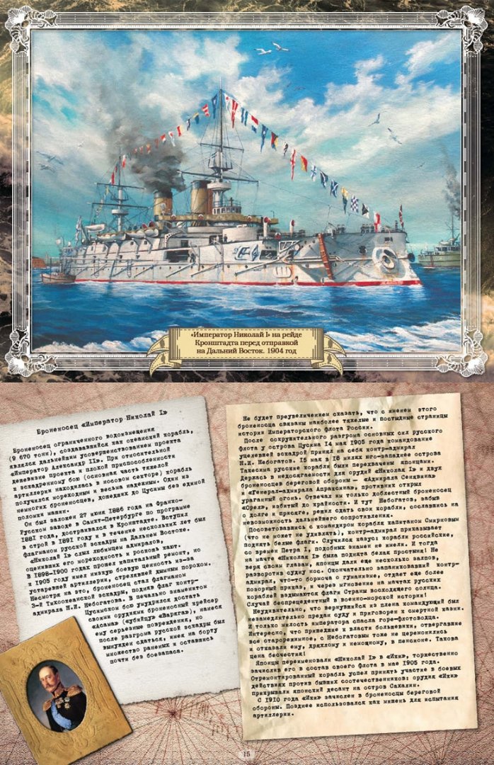 ОписаниеУважаемый читатель, мы рады предложить вам небольшой экскурс в историю Русского Императорского флота эпохи брони и пара. Историю, полную доблести, героического пафоса и горечи поражений, - короткого 40-летнего периода, от появления на Балтике первых броненосных судов до начала эры дредноутов. Экскурс глазами живописца. Пусть не столь объемный, но увлекательный. Художники-маринисты Наталья и Александр Калантаевы представляют вам свое виденье кораблей той эпохи. Насколько это удалось, судить Вам, дорогой читатель. И все же надеемся, что этот скромный труд не оставит равнодушными всех пытливых и любящих историю своей страны людей. Историю России, которой, несмотря ни на что, мы вправе гордиться!Уважаемый читатель, мы рады предложить вам небольшой экскурс в историю Русского Императорского флота эпохи брони и пара. Историю, полную доблести, героического пафоса и горечи поражений, - короткого 40-летнего периода, от появления на Балтике первых броненосных судов до начала эры дредноутов. Экскурс глазами живописца. Пусть не столь объемный, но увлекательный. Художники-маринисты Наталья и Александр Калантаевы представляют вам свое виденье кораблей той эпохи. Насколько это удалось, судить Вам, дорогой читатель. И все же надеемся, что этот скромный труд не оставит равнодушными всех пытливых и любящих историю своей страны людей. Историю России, которой, несмотря ни на что, мы вправе гордиться!