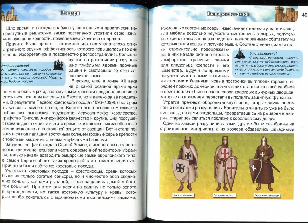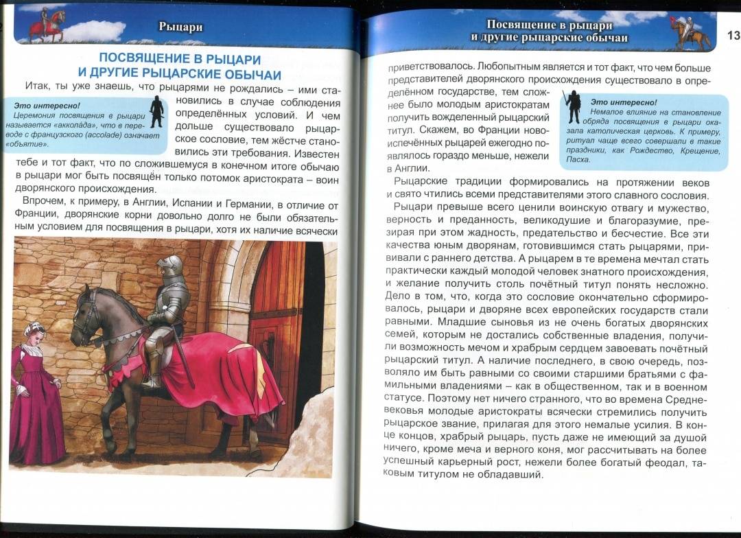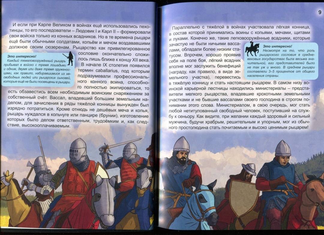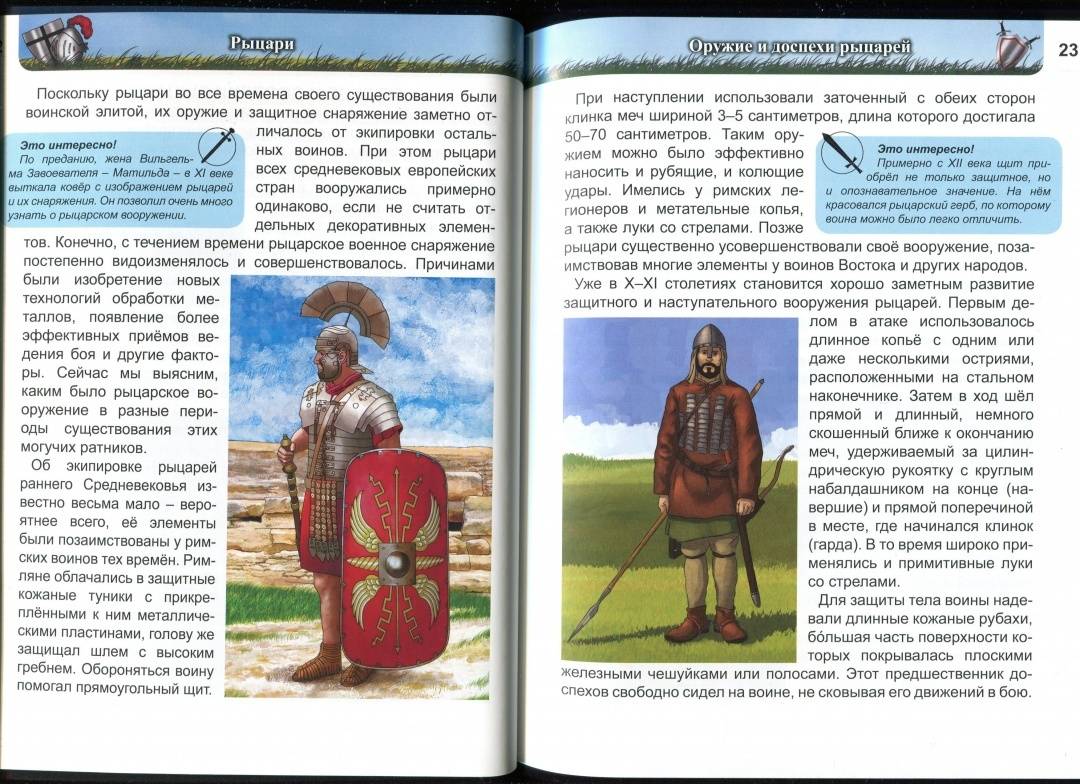 ОписаниеРыцари-могучие, закованные в броню воины, под тяжёлой поступью которых содрогалась земля во времена Средневековья. Именно о рыцарях, их традициях и обычаях, вооружении, тактике ведения боя, наиболее выдающихся сражениях, рыцарских турнирах, орденах и многом другом вы узнаете со страниц этой книги.Рыцари-могучие, закованные в броню воины, под тяжёлой поступью которых содрогалась земля во времена Средневековья. Именно о рыцарях, их традициях и обычаях, вооружении, тактике ведения боя, наиболее выдающихся сражениях, рыцарских турнирах, орденах и многом другом вы узнаете со страниц этой книги.