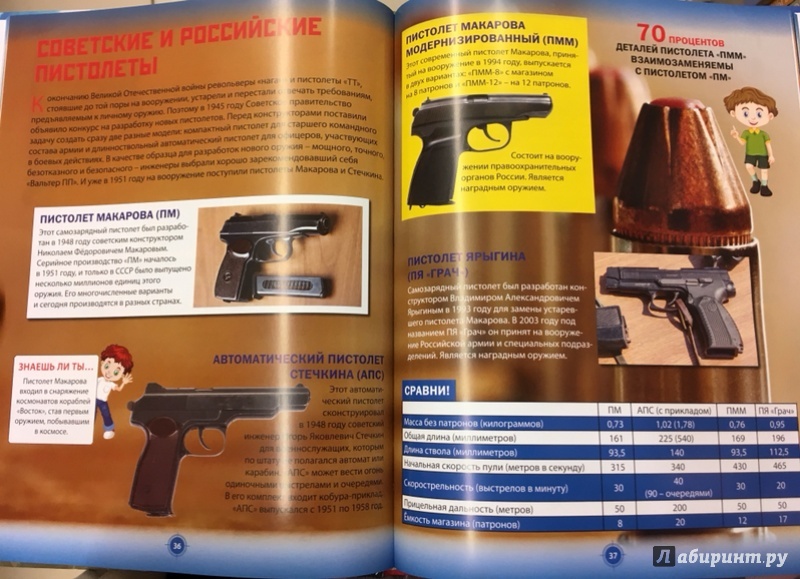 ОписаниеДорогой друг! Ты держишь в руках книгу о легендарном и самом современном холодном и огнестрельном оружии. На её страницах ты познакомишься со старинными боевыми топорами и античными мечами, с новыми моделями снайперских винтовок, узнаешь, как стрелять из арбалета, когда появилась сабля, чем знамениты пулемёт-максим и автомат Калашникова. А также ты прочитаешь в этой энциклопедии о военных кораблях и самолётах, танках, боевых машинах и современных ракетных установках. Вперёд, в увлекательное путешествие на борту сверхзвукового истребителя или атомного подводного крейсера!Дорогой друг! Ты держишь в руках книгу о легендарном и самом современном холодном и огнестрельном оружии. На её страницах ты познакомишься со старинными боевыми топорами и античными мечами, с новыми моделями снайперских винтовок, узнаешь, как стрелять из арбалета, когда появилась сабля, чем знамениты пулемёт-максим и автомат Калашникова. А также ты прочитаешь в этой энциклопедии о военных кораблях и самолётах, танках, боевых машинах и современных ракетных установках. Вперёд, в увлекательное путешествие на борту сверхзвукового истребителя или атомного подводного крейсера!