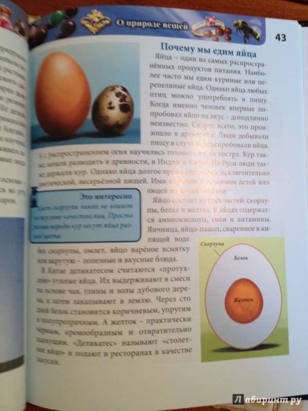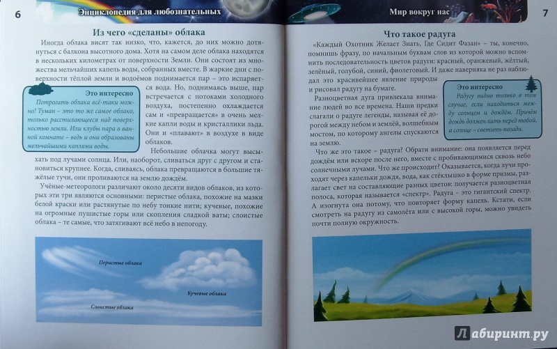 ОписаниеИнтересная информация, занимательные факты, яркие иллюстрации, широкий круг тем - всё это вы найдёте в данной энциклопедии! Вы узнаете, как можно потрогать облака, отчего жжётся крапива, почему надень рождения дарят подарки, как изобрели жевательную резинку, существуют ли русалки, откуда приходят сны и многое другое.Такой подарок обязательно заинтересует ребёнка, да и взрослые непременно откроют для себя что-то новое!Для чтения взрослыми детям.Интересная информация, занимательные факты, яркие иллюстрации, широкий круг тем - всё это вы найдёте в данной энциклопедии! Вы узнаете, как можно потрогать облака, отчего жжётся крапива, почему надень рождения дарят подарки, как изобрели жевательную резинку, существуют ли русалки, откуда приходят сны и многое другое.Такой подарок обязательно заинтересует ребёнка, да и взрослые непременно откроют для себя что-то новое!Для чтения взрослыми детям.