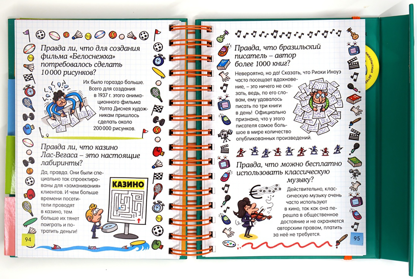 ОписаниеВ этой книге есть ответы более чем на 200 вопросов, которые задают все дети, но на которые не все взрослые могут сразу ответить!Правда ли, что зуб может вырасти в носу?Правда ли, что в футбол можно играть на велосипеде?Правда ли, что змеи ничего не видят?Правда ли, что китайцы опасаются числа 9?Правда ли, что некоторые самолёты не бьются при падении?Правда ли, что собаку избрали мэром города?4 темы: Бывает же такое!, Наука и техника, Чудеса природы, Игры и спорт.Для детей среднего школьного возраста.В этой книге есть ответы более чем на 200 вопросов, которые задают все дети, но на которые не все взрослые могут сразу ответить!Правда ли, что зуб может вырасти в носу?Правда ли, что в футбол можно играть на велосипеде?Правда ли, что змеи ничего не видят?Правда ли, что китайцы опасаются числа 9?Правда ли, что некоторые самолёты не бьются при падении?Правда ли, что собаку избрали мэром города?4 темы: Бывает же такое!, Наука и техника, Чудеса природы, Игры и спорт.Для детей среднего школьного возраста.