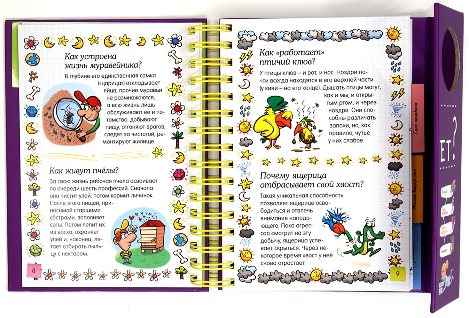 ОписаниеДля чего осьминогу щупальца?Откуда появляется цыплёнок?Как функционирует глаз?Как устроен коровий желудок?Как работает башенный кран?Как устроен средневековый замок?Как образуются морские волны?Что такое вакцина?В этой книге есть ответы на более чем 200 вопросов, которые задают все дети, но на которые не все взрослые могут сразу ответить!4 темы: Природа, Тело человека, Жизнь вокруг нас, А раньше?Для среднего школьного возраста.Для чего осьминогу щупальца?Откуда появляется цыплёнок?Как функционирует глаз?Как устроен коровий желудок?Как работает башенный кран?Как устроен средневековый замок?Как образуются морские волны?Что такое вакцина?В этой книге есть ответы на более чем 200 вопросов, которые задают все дети, но на которые не все взрослые могут сразу ответить!4 темы: Природа, Тело человека, Жизнь вокруг нас, А раньше?Для среднего школьного возраста.