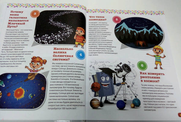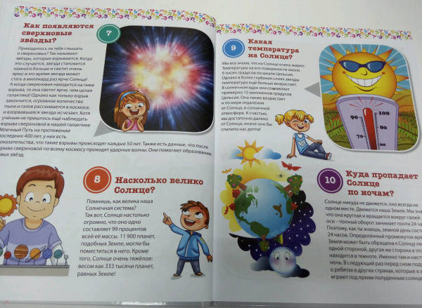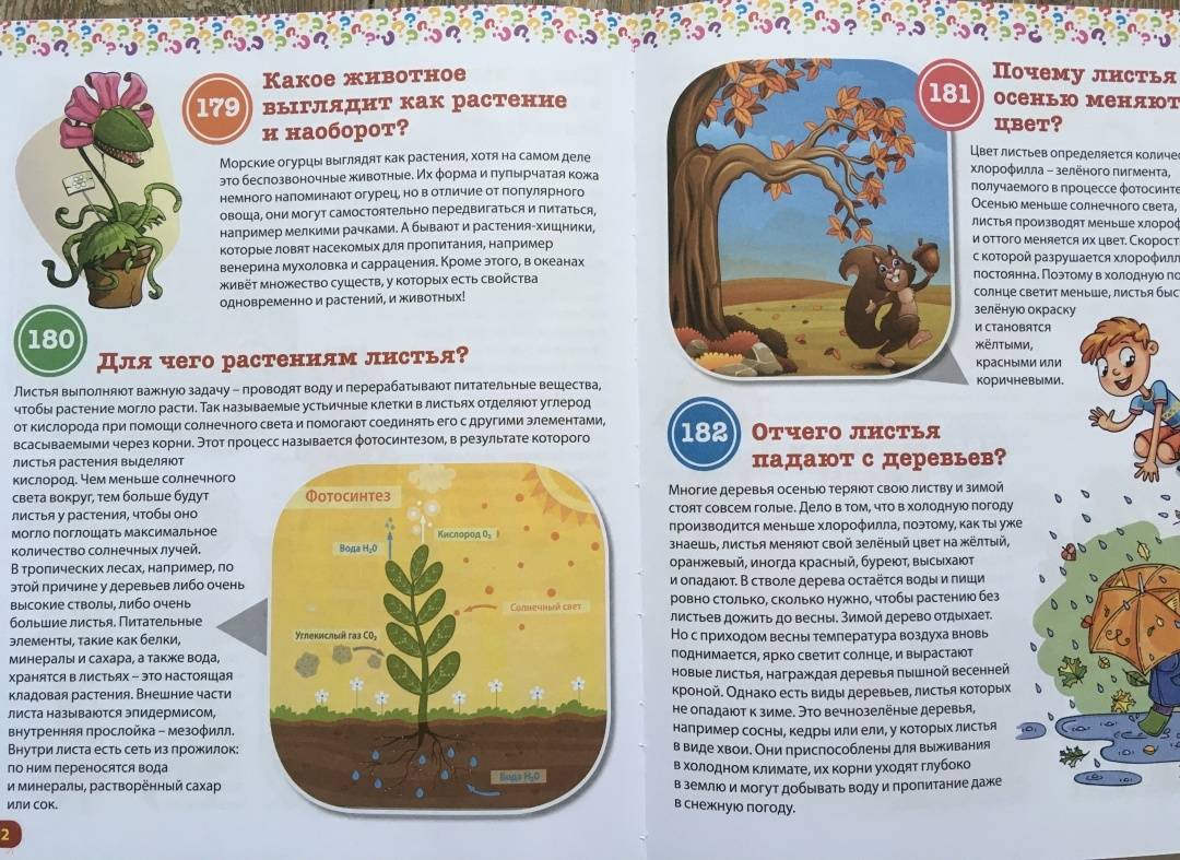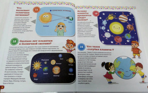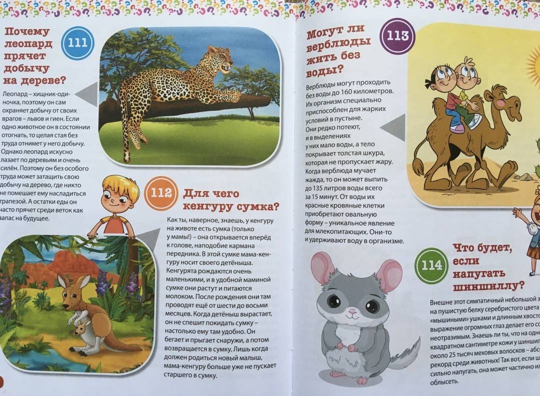 ОписаниеЭта красочная энциклопедия для маленьких любознашек, задающих бесконечные вопросы:* Сколько на небе звёзд?* Почему морская вода солёная?* Откуда взялись динозавры?* Как общаются слоны?* Для чего растениям цветы?* Почему у людей глаза разного цвета?* Что такое туман?* Почему в самолёте закладывает уши?* Когда бывает високосный год?В этой энциклопедии кратко и понятно даны ответы на самые часто задаваемые детьми вопросы: от тайн Вселенной и загадок животного мира до секретов природы и строения человека. Читайте вместе с ребёнком нашу книгу, рассматривайте яркие картинки и получайте новые знания!Эта красочная энциклопедия для маленьких любознашек, задающих бесконечные вопросы:* Сколько на небе звёзд?* Почему морская вода солёная?* Откуда взялись динозавры?* Как общаются слоны?* Для чего растениям цветы?* Почему у людей глаза разного цвета?* Что такое туман?* Почему в самолёте закладывает уши?* Когда бывает високосный год?В этой энциклопедии кратко и понятно даны ответы на самые часто задаваемые детьми вопросы: от тайн Вселенной и загадок животного мира до секретов природы и строения человека. Читайте вместе с ребёнком нашу книгу, рассматривайте яркие картинки и получайте новые знания!